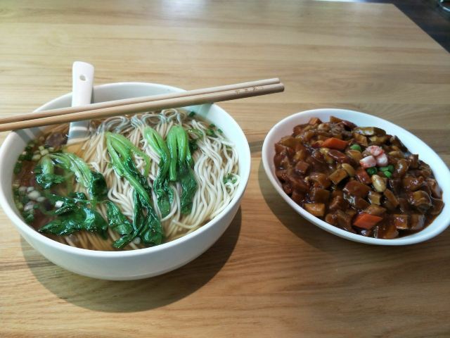 体检过后好好犒劳一下自己,不过这次体检结果也不是很理想,饮食还需注意。 这家店收藏了很久,一直没机会,这次稍微绕点路就到。整个店面装饰得非常贴近自然,种了很多的花花草草。用餐环境很干净,点了招牌的阳春面,外加八宝辣酱的浇头,实际不是最正宗的阳春面,但是面条还比较有弹性,浇头份量也很足。