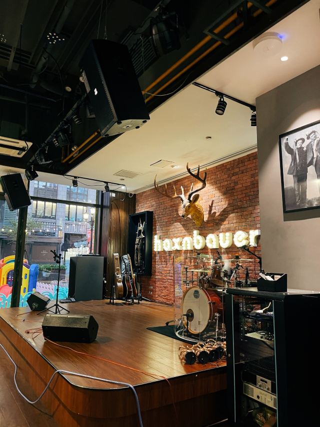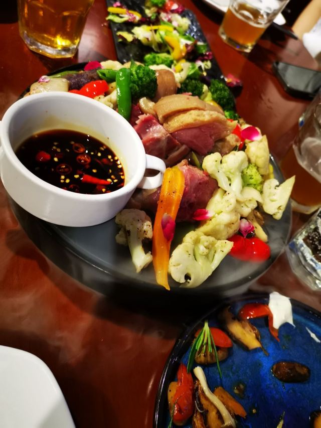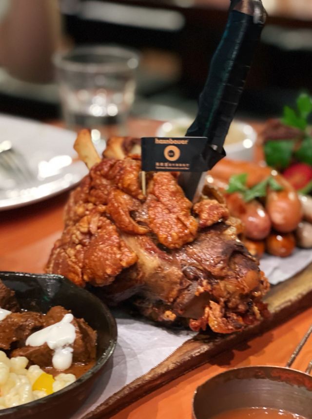 横竖是二温小迪下班后和同事来这里聚餐,感觉非常不错,哪怕是周五晚上,多数啤酒还是可以参加happy hour的活动。不过要参加买一送一,就要两杯啤酒规格口味都一样,且不能分享,必须一个人喝两杯,喝完一杯,才能要第二杯。 「德国猪肘子」这个是德国餐厅必须要尝下的,味道还可以,就是部分皮很硬,咬不动。 「海森堡经典香肠拼盘」香肠吃了两根,一根是蔬菜的,一根是辣的,都一般般,还不如麦当劳的图灵根。 「奥地利酥软炖小牛肉」这个不错,牛肉和配的通心粉都很好吃。 「秘制巴伐利亚猪肋排」口味偏甜,是上海人喜欢的口味。 「黑森林薄饼」这个很惊艳,火腿很香,薄饼脆脆的,超爱吃。 「草莓鲜虾混合沙拉」颜值高,味道也不错,就是量少了点。 晚上的表演也很棒,乐队还是挺不错的。 服务员太少了,感觉周末有点招待不过来。