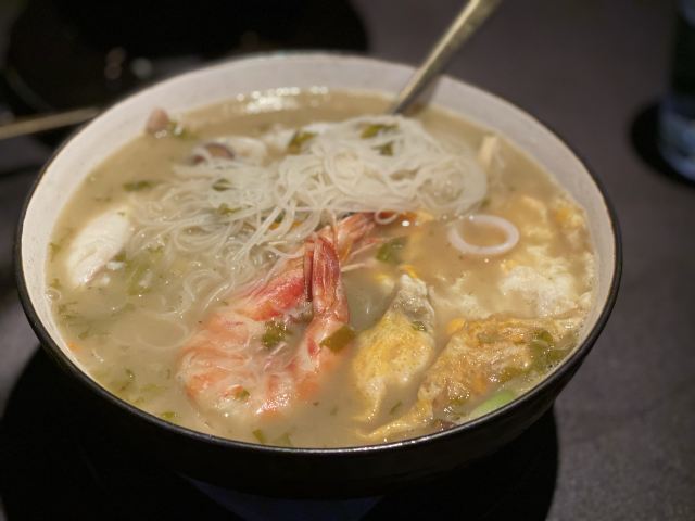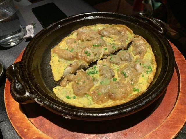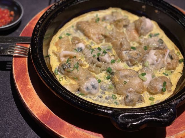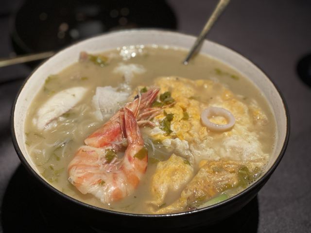 sonnyka醉东还是这么火爆啊,网上订位置没有提前两个礼拜是基本上订不上的。所以正好来嘉里中心,干脆早点到,午市开门进。 他家的装修风格还是比较时髦的,黑色色调,蛮好看,就是位置间隔有点小。 我们没点啥大菜,点了几个小菜,味道吃下来都还蛮好吃的。 招牌肥肠第一口很惊艳,外脆内韧,很香,不论口感和调味层次都挺丰富的。就是吃到最后有点腻。 沙蒜豆面作为他家招牌还是不错的,主要是酱汁调的又鲜又香,个人觉得他家豆面有点烂。 其他几个,蚵仔煎手撕豆腐都是家常菜,不功不过吧。 点了个台州海鲜面,上来好大一碗,里面雪菜笋和各种海鲜做汤底,好鲜好鲜,面是台州特色的那种米面,很细很入味。煎鸡蛋吸满了汤汁真好吃啊.... 服务还不错,主动添水啥的,就是感觉有点忙有时候照顾不过来。 如果不排队,还是会来的店。