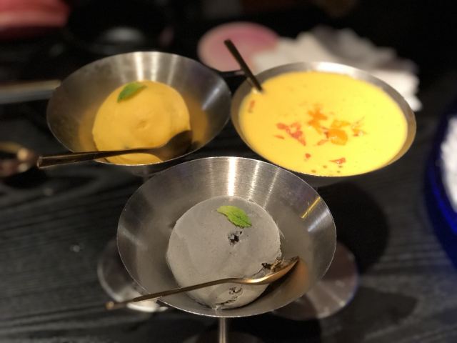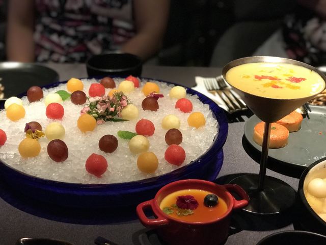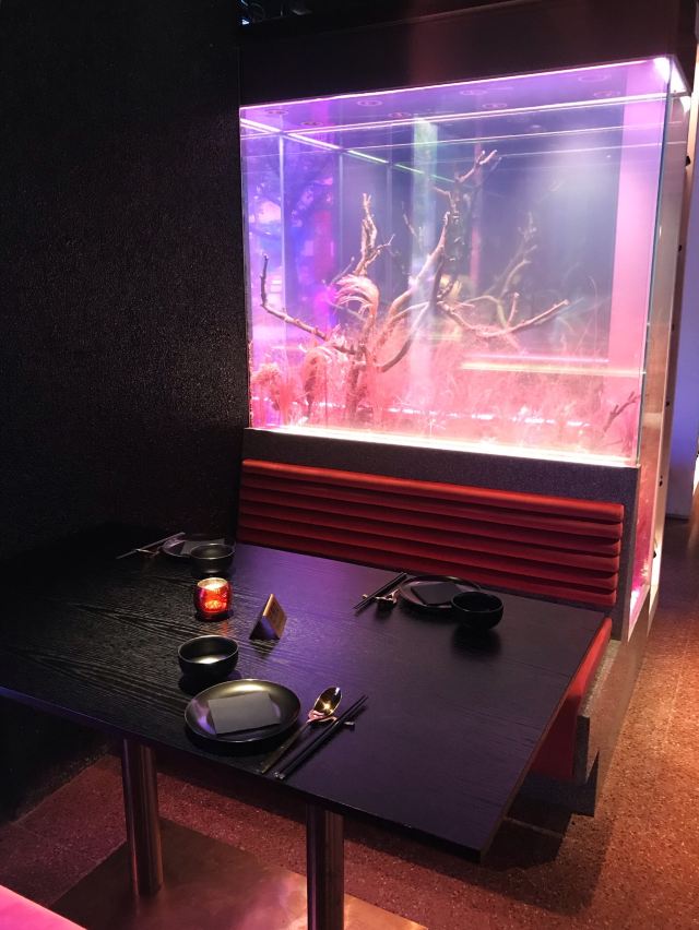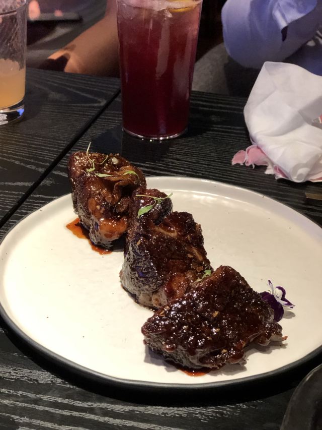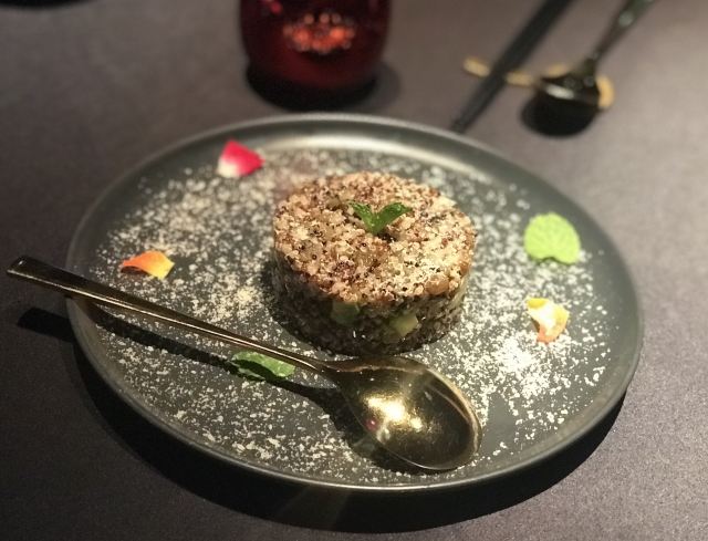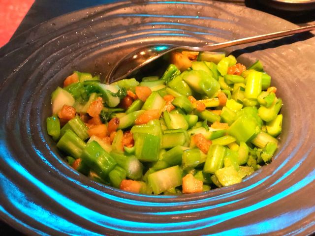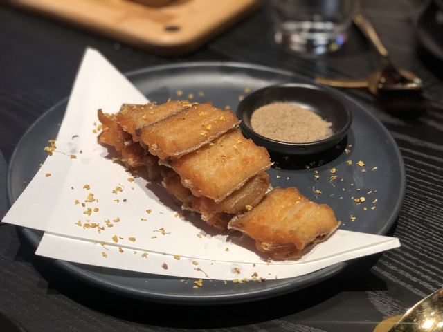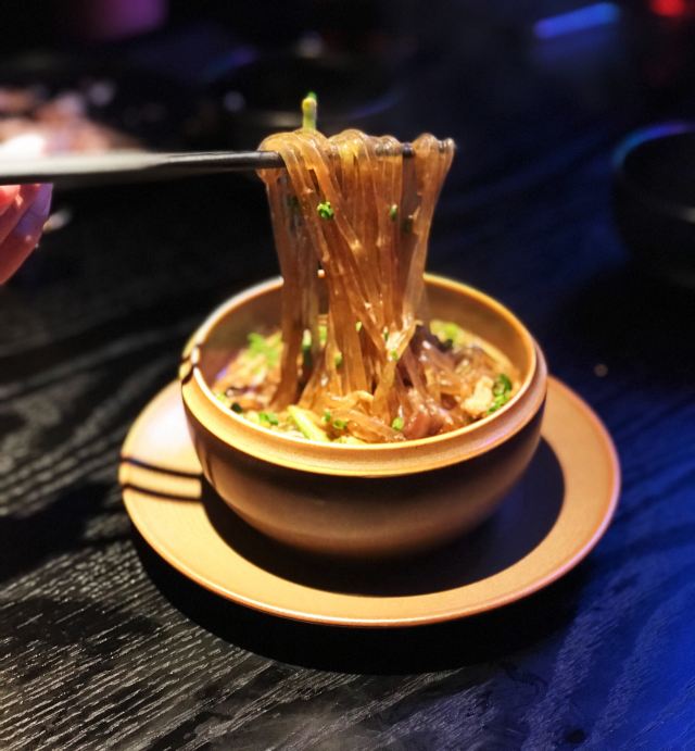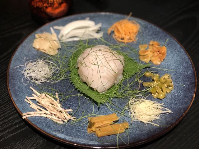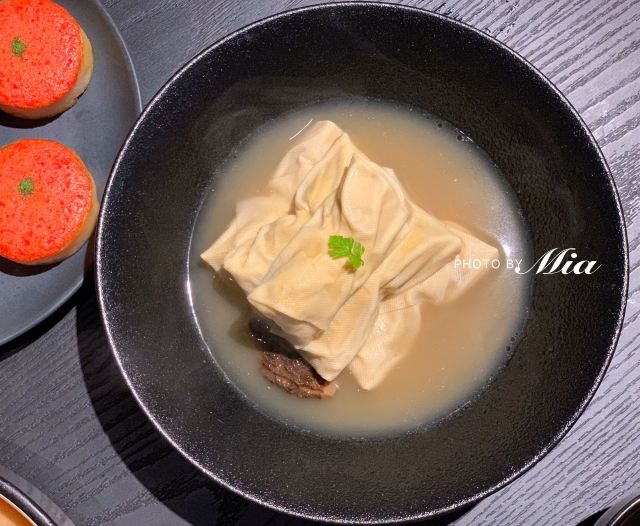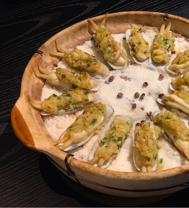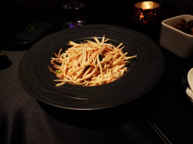 秃比不是小刘鸭幽暗的环境,隔断之间流光溢彩的🐟金鱼投影,比起中餐厅,更像是一间时髦🍸酒吧,让人沉迷于其中。 「朗姆酒茶叶鹌鹑蛋」☑小巧可爱的茶叶鹌鹑蛋被盛在咖啡豆木盒中端了上来,旁边有只🐦小鹌鹑。加入了朗姆酒慢煮出来的鹌鹑蛋带着特别的香气,极为入味。 「沙蒜豆面」☑沙蒜即海葵,豆面即红薯粉丝,沙蒜的融合,让普通的粉丝沾染了一丝鲜美。不加一滴水,用得都是沙蒜的汁水,因此酱汁十分浓稠,裹在豆面上,浓郁鲜香。 「台州年糕烧东海鲳鱼」☑每天新鲜运送东海🐟白鲳鱼,无需任何调料加持,本身的鲜味就足够。鱼肉鲜嫩。长的像鱼丸的年糕球,小巧可爱韧性十足。 「香酥澳洲小牛肉」☑牛肉品质上乘,外层有一层酥壳,内层则鲜嫩多汁,层次分明的口感再加上配好的复合味型酱汁,有惊喜的味道。