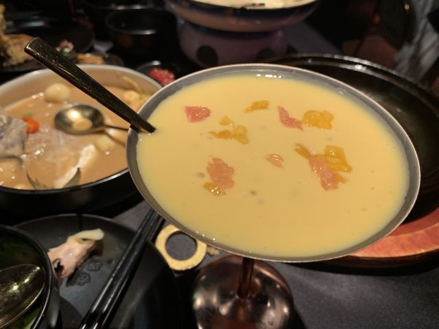 Miasmile饭点6点不到取号,前面4桌,等了40多分钟进去。 我们正好四个人,于是点了个918元的四人团购套餐,其实最后是后悔的,吃不完,还是应该单点,点些经典的菜品。 2个凉菜,还有8-9个大菜,以及点心,最后还有甜品黑芝麻冰淇淋或杨枝甘露。 点名几个印象比较深的菜,脆皮肥肠,非常香脆,越嚼越香,这个超级赞! 蛏子数量比较少,但味道不错,嫩嫩的。 雪花牛肉炒饭,这个强推,无敌香喷,非常入味。 顺德水牛奶也是奶香可口,只是外皮炸得有点过油了。 地狱炸鸡,上菜的时候真是吓了一跳,切好后一大盘,但是明明是烤鸡嘛!很香,不过实在吃不下了,套餐里这个量实在太大了。 其他的海鲳鱼、明太子、豆腐煲、百叶包、广东菜心,味道都尚可,总体来说没有踩雷的,口感也算清爽,不会嘴干。