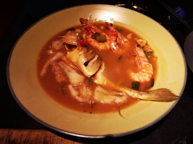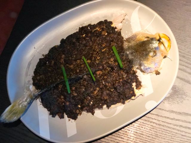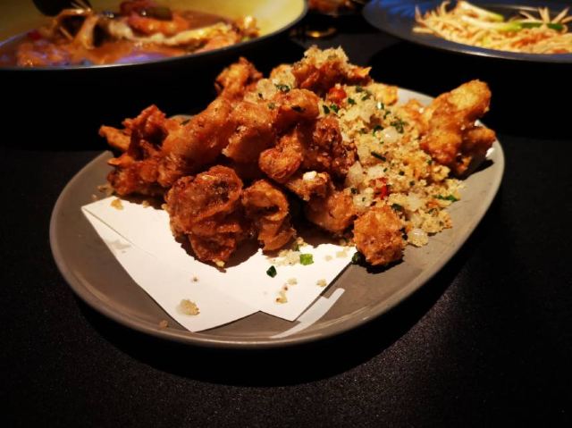 蛋花食游记在嘉里中心的台州菜系餐厅,静安寺,交通很方便。门面很大,感觉有点酒吧的装修风格,轻松雅致。 脆皮肥肠,招牌菜,广式风味,爽脆的表皮包裹着软糯肥嫩的肥肠。一口咬下去,催催糯糯的双重口感好吃到停不下来,而且很入味,越嚼越香,好吃 沙蒜豆面,经典的台州菜,海葵韧中带脆,汤汁浓郁鲜美,最好吃的是豆面。吸收了海葵的精华,细腻,鲜甜,好吃。 大台州年糕烧东海鲳鱼,鲳鱼很大条,肉质嫩滑紧质,没有腥味,一看就是非常新鲜,汤头浓郁鲜美,年糕充分吸收了鲳鱼的鲜,和上海的毛蟹年糕有异曲同工之妙,好吃 总体来说很棒的海鲜店,点的几个菜都好吃,全程没有雷区,而且环境也好,下次有机会会再去