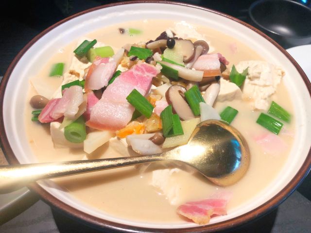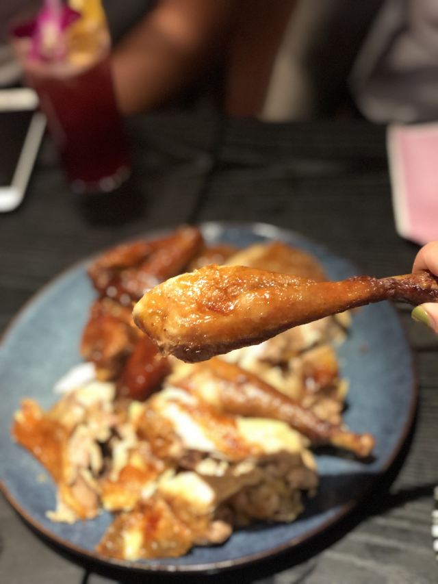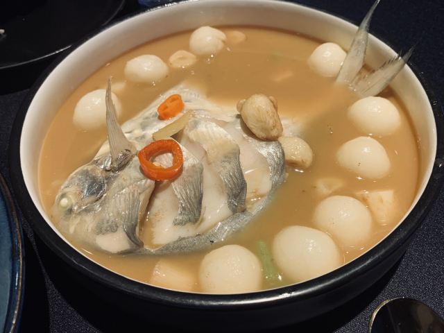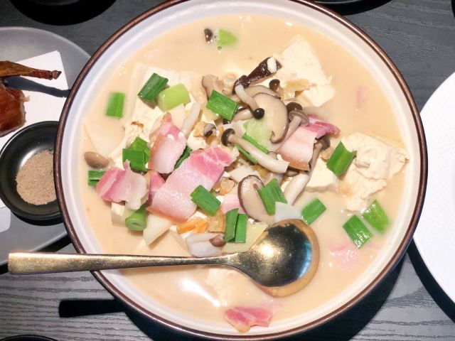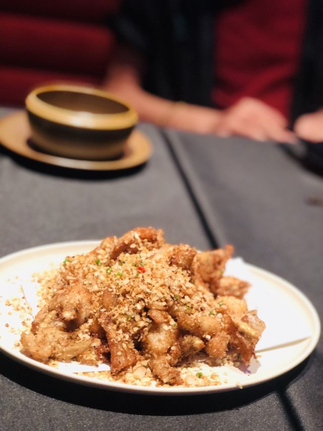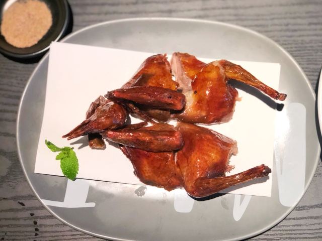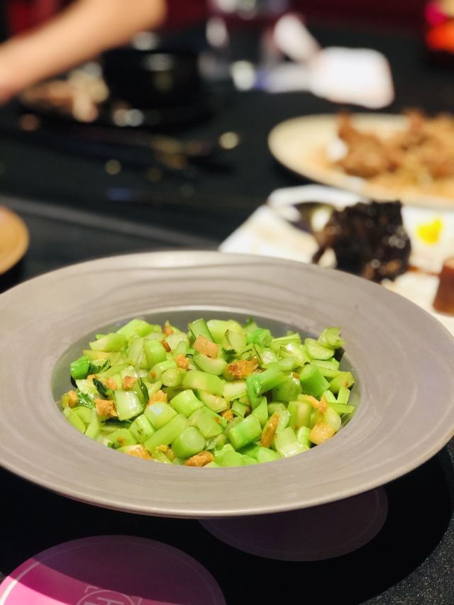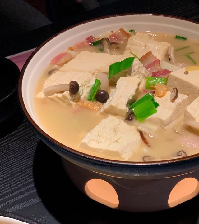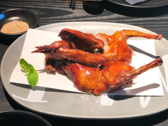 fly_me_to_the_moon️渐渐的,我也变成了吃冷淡…… 真心的,现在吃啥不是重点,关键是和谁一起共进午餐。 这家中餐厅主打台州菜系,可惜团购套餐里的都不是什么很招牌的菜。 暗搓搓的环境,倒是蛮适合聊天的,也能掩盖我难看的吃相…… #猪脚冻# 满满胶原蛋白。不是特别咸,挺喜欢吃的。 #脆皮乳鸽# 咩哈哈,这个假期疯狂爱上乳鸽!去哪里都想来只乳鸽!皮很脆,肉有嚼劲,爱了爱了…… #手撕石磨豆腐煲# 讲真不喜欢豆腥味,吃一块足矣。 #梅干菜肉沫蒸黄鱼# 梅干菜的味道没吃出来,黄鱼很新鲜,但不喜欢这样的烹饪。 #猪油渣广东菜心# 这个菜也太咸了吧,广东菜心很juicy导致我吃很多但也很口干!猪油渣第二次吃,有种吃肉肉的感觉……