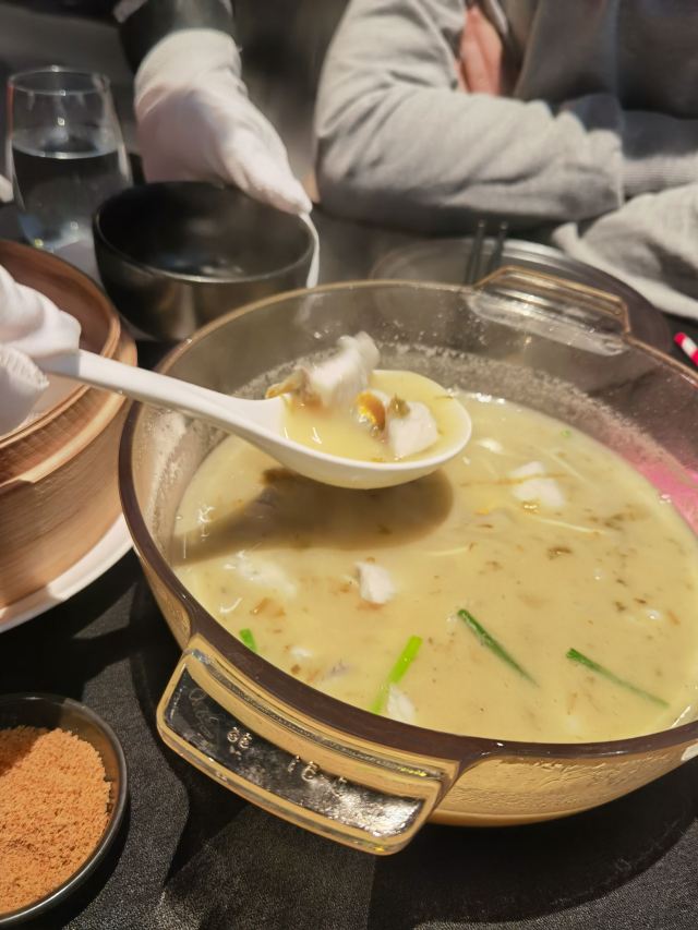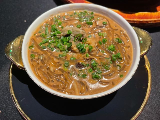 桃桃淘丽丝作为它家沙蒜豆面小粉丝一枚,当然要来拔草 服务一如既往的好,没有提前定位,也安排了不错的4⃣️人位,如果有纪念活动,提前告知,店家还会来个花心思的布置,因为我正好看到🈶️这么一桌,玫瑰花瓣🌹,鲜花簇拥,布置的好好看吖; 现在沙蒜豆面可以按位来点,69/位,直接分食,免去了公筷的麻烦,非常滴贴心,米道鲜的来,这点量也刚刚好,毕竟后面还有好几道菜呢…… 脆皮乳鸽💰58,上桌已经切成四块,提供湿纸巾和一次性手套,好吃是蛮好吃的,不过肥嫩感还不太足; 避风塘牛蛙💰72,牛蛙炸的刚刚好,肉质细嫩,入味,一点不辣,倒是面包屑🈶️一丢丢的辣; 期间还送了两杯饮料🥤,算是小惊喜吧😄