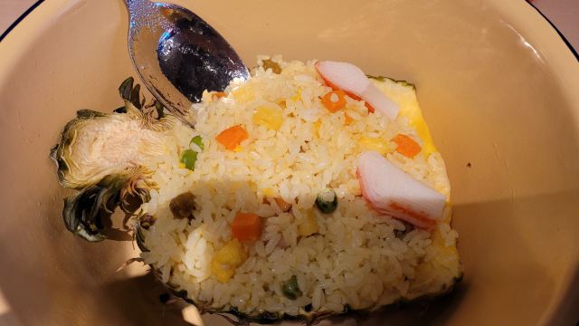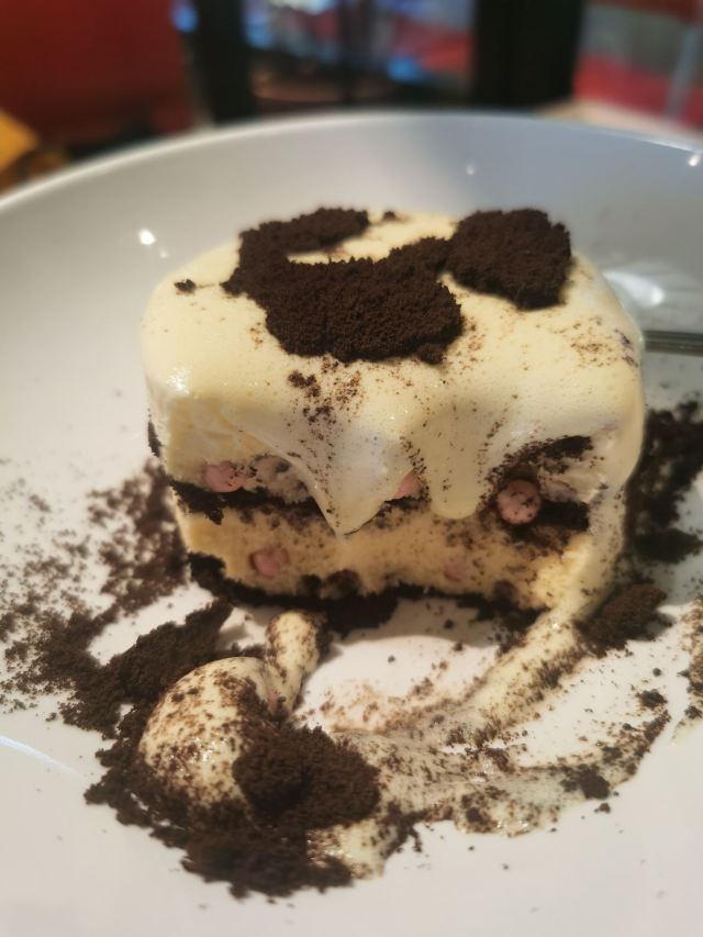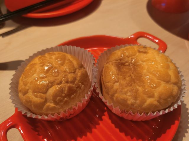 食神牛环境:很久没吃避风塘了,晚上7点半到店已经没什么客人,店堂分了内外两部分,装修以红绿色为主调黑白方格地板港式怀旧风格。 服务:接待蛮热情安排就坐倒上茶水,扫码点单最近菜品主推金蒜椒盐皮皮虾、霸王酥皮叉烧包。 餐点:港式香麻球(3只)25元,麻球蛮大的香酥绵柔,薄薄的芝麻馅很香甜。 避风塘艇仔粥29元粥很绵厚料也蛮多鲜香润泽。 爆浆榴芒菠萝包(2只)19元酥皮粉脆香甜,榴莲味浓一口爆浆。 蜜汁叉烧肠粉32元肠粉薄滑莹润,叉烧细碎酥嫩。 瀑布木糠布丁32元打开塑料纸浓厚的芝士流淌下来,松柔的蛋糕打底中间夹着粉色的棉花糖,好吃的甜点。 餐点味道蛮好价格实惠,环境蛮舒适服务蛮周到。