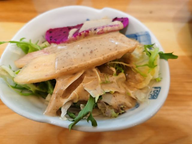 米亭在上海开了几家分店了,每家装修的都不错,占地也不小。服务员态度很好,主动为客户服务。点了烤鳗鱼饭套餐,主菜前有蔬菜或者水果色拉,主菜后有甜品,完整美味的一餐。