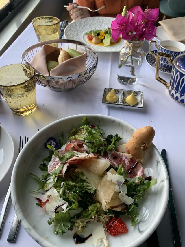 Randy陆家嘴的景是看不厌的景色 这家属于网红餐厅了,反正晚餐已经看过N个照片和视频了,实际上这家餐厅刚落成不久就来过了,还有个朋友的小朋友满月酒就在这里,上周末想吃个下午茶就过来坐坐了。 [薄荷]环境: 还是要好天气来,三件套比较清晰,是一个狭长型的餐厅,最前的位置和景观最好,有楼梯可以上露台,露台的视野也很开阔。14点到的人不算太多,露台没开,毕竟前两周还是35-40度的天气。 [服务铃]服务: 很不错,停车开到门口有代泊车,50元停车费付20元即可,要拿车扫描手牌上的二维码,预约提车,下楼车子就到了。餐饮服务中规中矩,下午茶套餐上来速度比较快。 [调皮]餐饮 「全江景双人下午茶」 鸟笼式样,属于拍照比较好看吧,口味一般。 #下午茶 #上海探店 #魔都探店 #浦东三件套