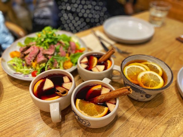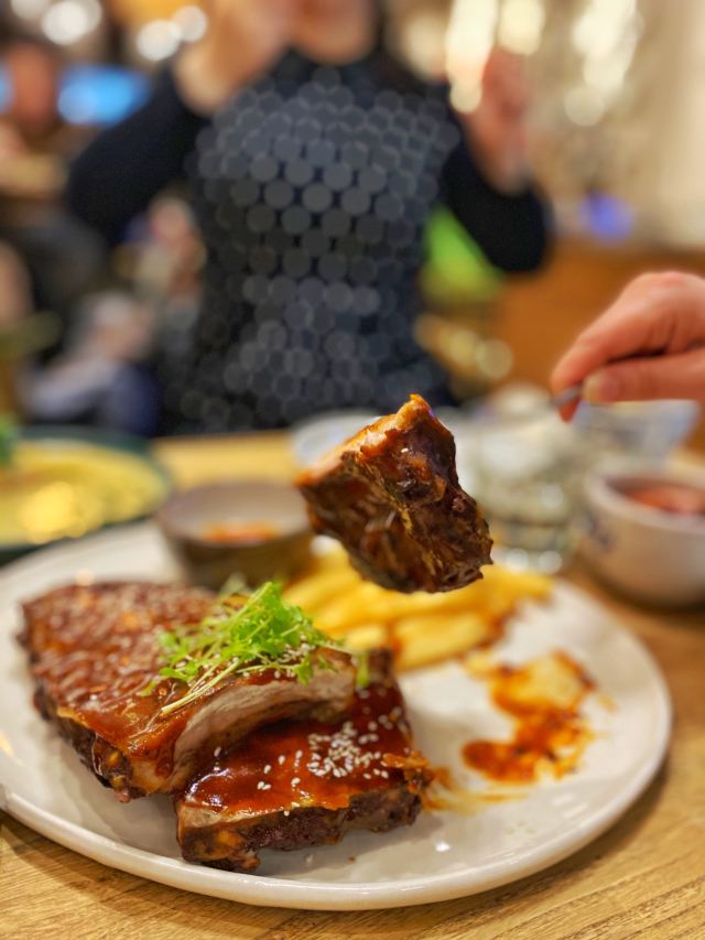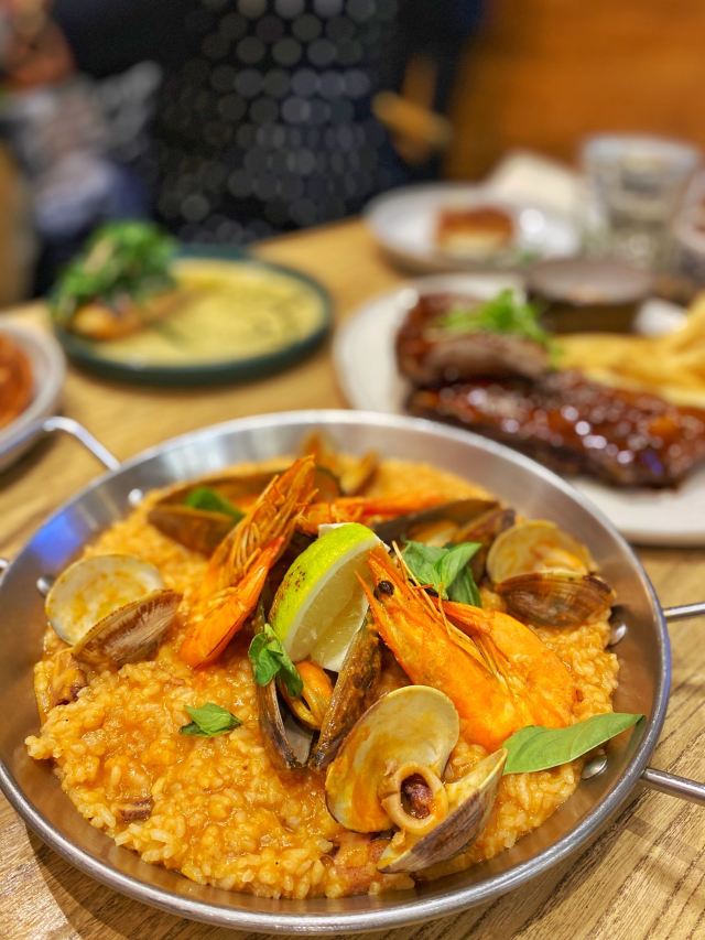 🍽【美食攻略】 📍详细地址: 肇嘉浜路238号地上一层 🚗交通攻略: 地铁9号线肇嘉浜路2号口步行3分钟 🕙营业时间: 8:00-21:00 🍽推荐菜品: 热红酒:很适合这样阴冷的天气,暖暖的,红酒的香气在口中漫开。 牛排蔬菜碟:大赞,牛排简直绝了,又嫩又新鲜,忍不住想再来一盘。 韩味猪肋排:略微偏辣的口感,但非常入味,酱汁的口味很棒,肋排也烤的刚刚好。 西班牙海鲜饭:算是符合中国人口味的西班牙海鲜饭,米饭软烂,味道不错。