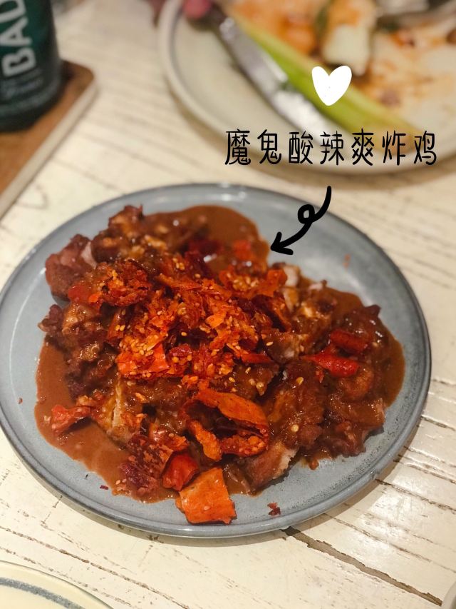 秃比不是小刘鸭悦璞除了标志性的100个🙂微笑脸杯子墙,现在还有来自世界各地的精酿啤酒、红白葡萄酒🍷、起泡酒、香槟...变身夏夜酒吧! 「魔鬼辣酸爽炸鸡」 这道🔥火辣灼热的🐔炸鸡,开场就让人口水分泌。新鲜的鸡腿去骨,裹上天妇罗粉炸透,足足放了三种风味的辣椒,呛口的🌶️小米椒、黄飞鸿辣椒酥、东南亚风味的是拉差酱,无辣不欢的嗜辣星人,必须点它!入口先是小米辣的呛口椒香,很快红公鸡酱的甜辣覆盖了舌尖,接下来是酸辣的主场,三重风味在唇齿间交织纠缠不休,辣度层层攀升,绝对酸爽。 「芝士黄金炸猪排」裹满金黄面包糠的瑞士炸猪排,黄澄澄的流心蛋,呈上桌时还在微微颤动。轻划开金汪汪的🍳流心蛋,看着蛋液层层漫过猪排,画面非常治愈。酱料是点睛之笔,别出心裁加入了🍋柠檬醋、照烧酱,酸甜的口感很是令人着迷。炸透的猪排外脆里嫩,一口咬下既有肉香又有蛋香,很是满足~ 「秘制麻婆豆腐」豆腐裹着薄粉,经过高温的洗礼后带来酥软的豆香,蘸着酱汁一起吃,中西合璧式的体验,很是有趣。点燃味觉关键的精髓在于酱汁,酱料都是主厨自己调配,将麻婆豆腐所用的豆瓣酱、🌶️辣椒....打磨成红亮油润的酱汁,先是鲜辣占据了舌尖,余调带着一丝丝麻香,超过瘾! 📍地址:肇嘉浜路238号地上一层 🚇交通:地铁12号线嘉善路站 💰人均:100元