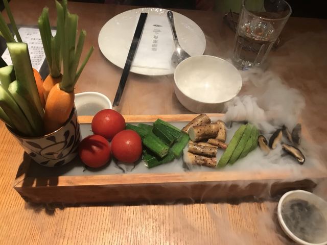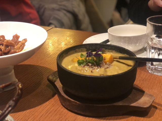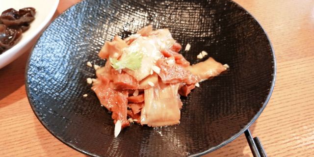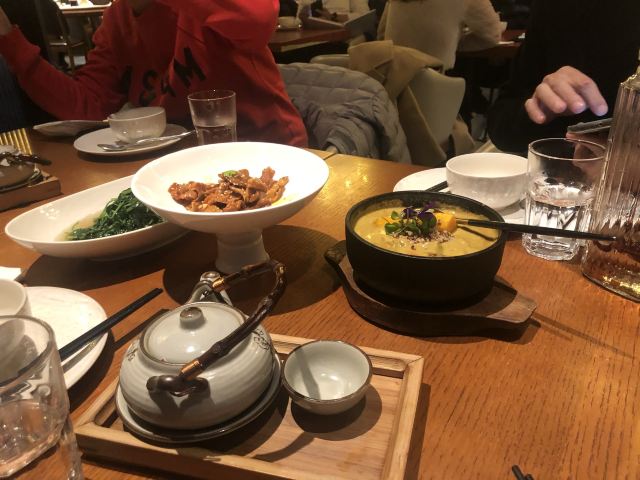 Iamis这家店在收藏夹里有一阵子了,今日拔草,觉得还行。用餐人挺多的,等位了一会。上菜的速度非常快。夫妻素片,微辣,是一道冷菜,吃起来的口感不错,略偏咸,感觉可以陪着饭吃,里面有一类菌菇吃起来比较爽脆。松茸汤,这壶其实量很大的,里面真的有真材实料,有松茸和虫草花,这点很满足。黑椒时蔬,煎得正好,味道不错。第一次吃素煎包,里面有菌菇和西葫芦丁,可以尝一尝。梅干菜炒饭要表扬一下,非常入味,特别是放了一丝一丝的高丽菜,味觉丰富很多。最后送了店里的酸梅汁给我们尝一尝,挺好喝的。用餐人挺多的,等位了一会。上菜的速度非常快。夫妻素片,微辣,是一道冷菜,吃起来的口感不错,略偏咸,感觉可以陪着饭吃,里面有一类菌菇吃起来比较爽脆。松茸汤,这壶其实量很大的,里面真的有真材实料,有松茸和虫草花,这点很满足。黑椒时蔬,煎得正好,味道不错。第一次吃素煎包,里面有菌菇和西葫芦丁,可以尝一尝。梅干菜炒饭要表扬一下,非常入味,特别是放了一丝一丝的高丽菜,味觉丰富很多。最后送了店里的酸梅汁给我们尝一尝,挺好喝的。用餐人挺多的,等位了一会。上菜的速度非常快。夫妻素片,微辣,是一道冷菜,吃起来的口感不错,略偏咸,感觉可以陪着饭吃,里面有一类菌菇吃起来比较爽脆。松茸汤,这壶其实量很大的,里面真的有真材实料,有松茸和虫草花,这点很满足。黑椒时蔬,煎得正好,味道不错。第一次吃素煎包,里面有菌菇和西葫芦丁,可以尝一尝。梅干菜炒饭要表扬一下,非常入味,特别是放了一丝一丝的高丽菜,味觉丰富很多。最后送了店里的酸梅汁给我们尝一尝,挺好喝的。用餐人挺多的,等位了一会。上菜的速度非常快。夫妻素片,微辣,是一道冷菜,吃起来的口感不错,略偏咸,感觉可以陪着饭吃,里面有一类菌菇吃起来比较爽脆。松茸汤,这壶其实量很大的,里面真的有真材实料,有松茸和虫草花,这点很满足。黑椒时蔬,煎得正好,味道不错。第一次吃素煎包,里面有菌菇和西葫芦丁,可以尝一尝。梅干菜炒饭要表扬一下,非常入味,特别是放了一丝一丝的高丽菜,味觉丰富很多。最后送了店里的酸梅汁给我们尝一尝,挺好喝的。服务员有点少,要找的时候得等一等。
