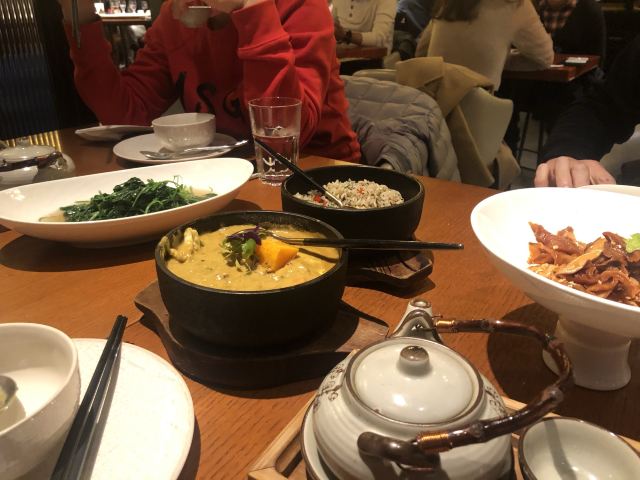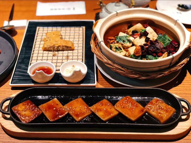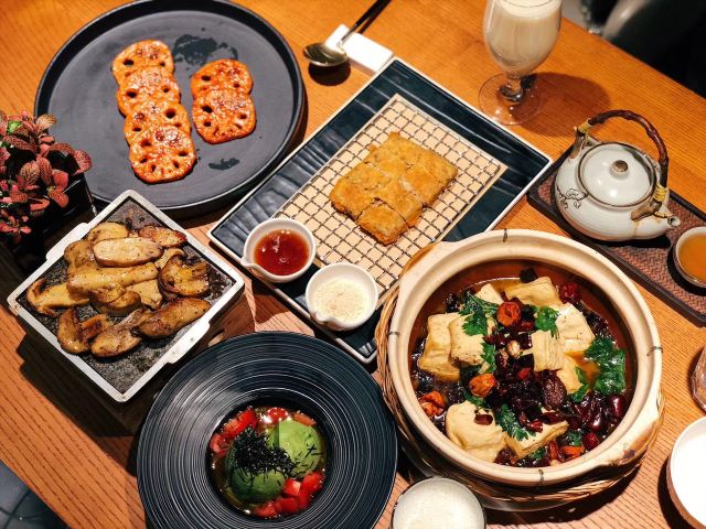咖喱藜麦时蔬,松茸汤包,糖醋藕夹,夫妻素片,干挑素馄饨,炝烧豆腐,清烫高汤豆苗,红油馄饨,自然农法榛果糙米浆,酸汤煸尖腐衣,茶壶松茸汤,黑松露炒饭,桂花年糕,夫妻肺片,香脆酥排,秋葵,太阳公社有机蔬菜,椰汁西米露,黑椒鲜蔬,清烫高山豆苗,XO酱拌面,松茸汤,黑松露榄菜拌饭,菌皇炖豆腐,冰镇鲜蔬,菌皇生煎包