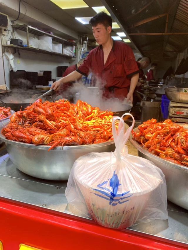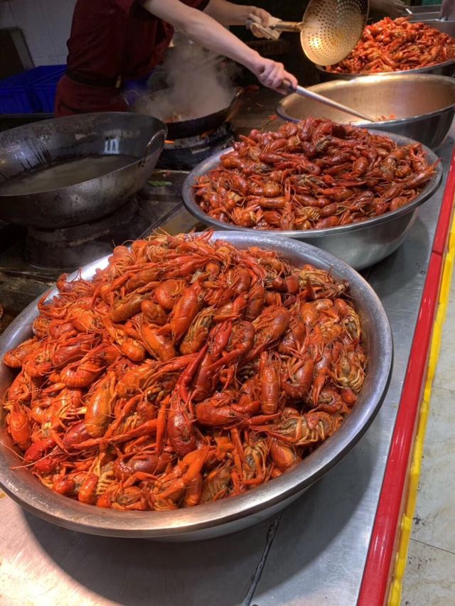 亮亮这场面看起来还是比较震撼的,这厨师也太狠了吧。满满的一锅啊,还在活蹦乱跳的小龙虾。这就从侧面看出来,店家的生意是多么的火爆。