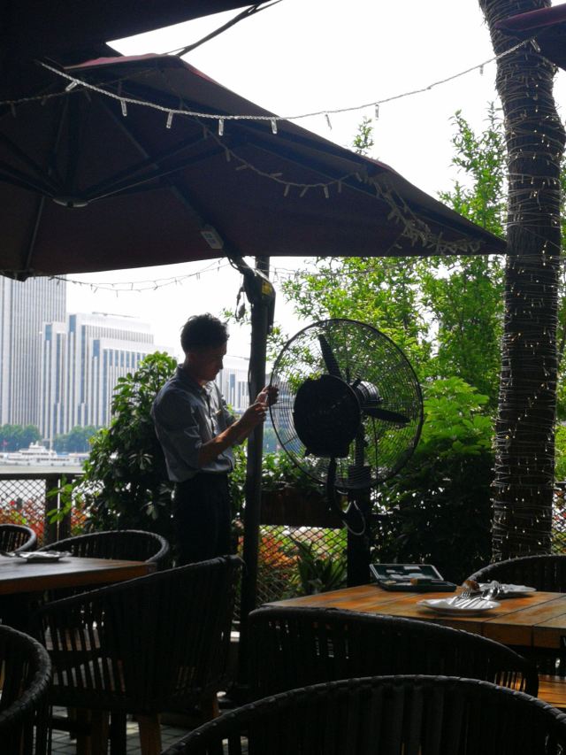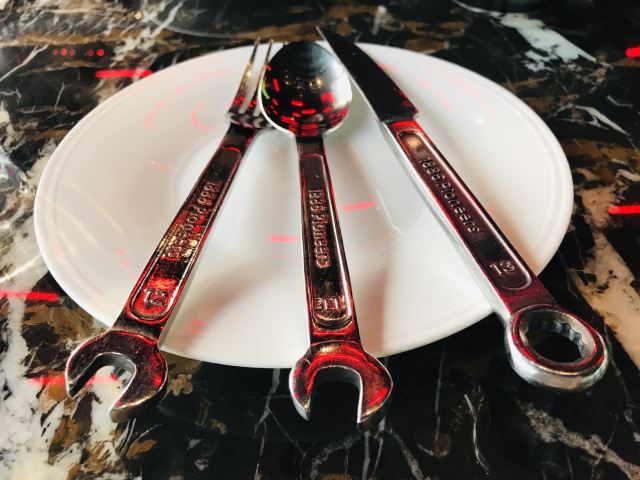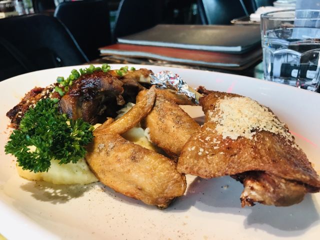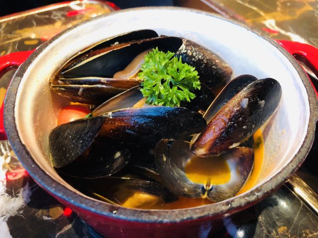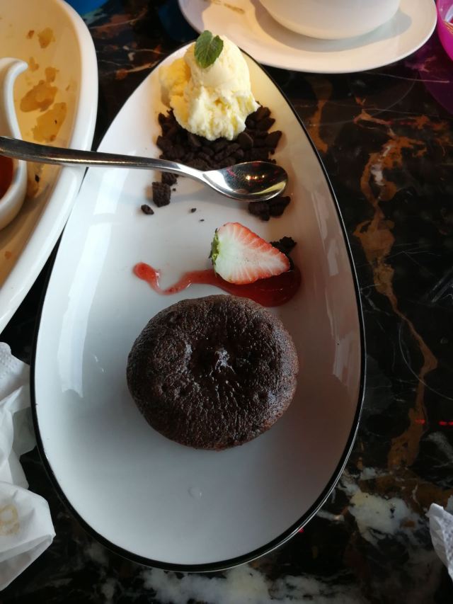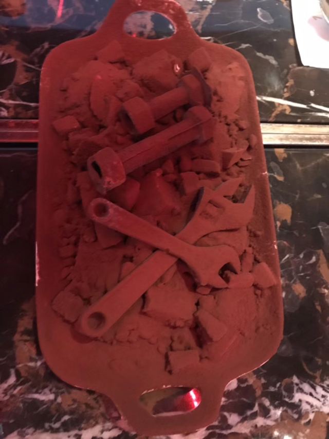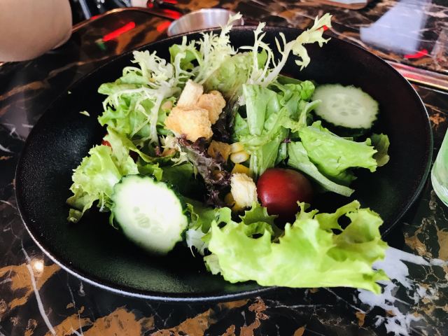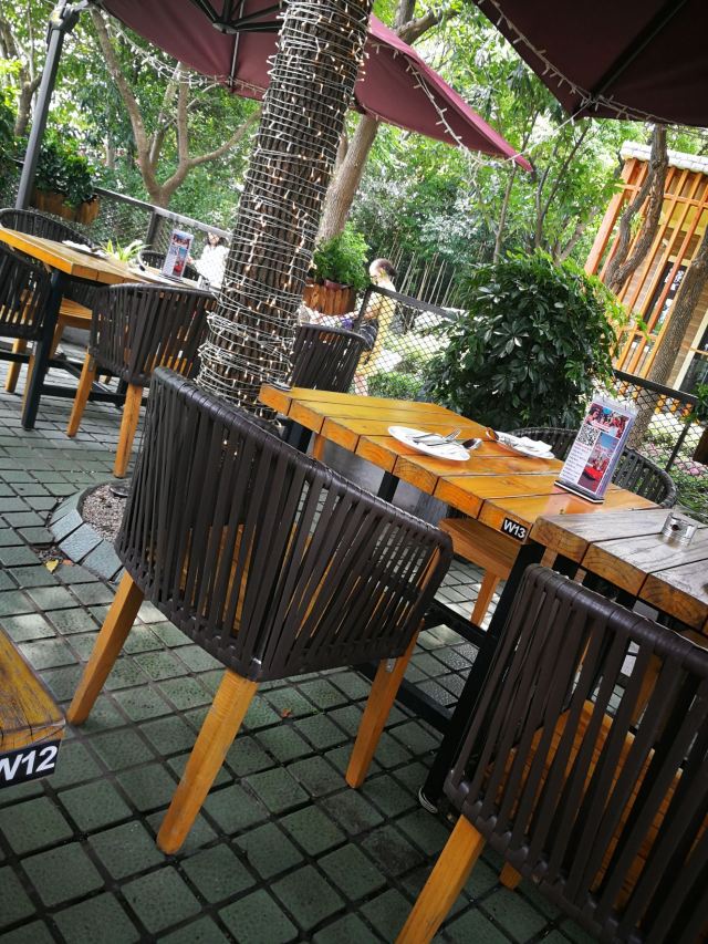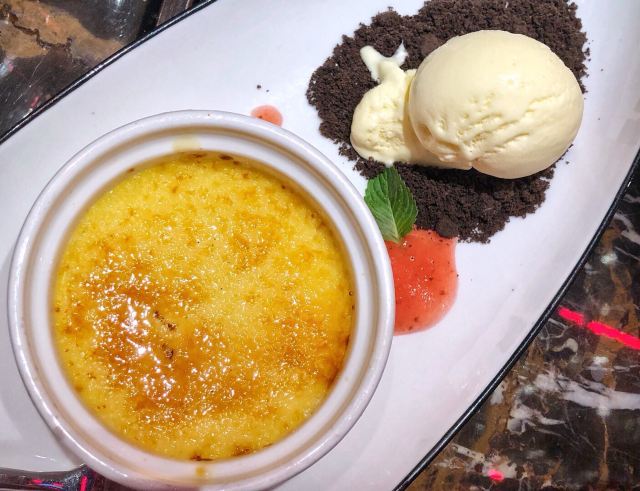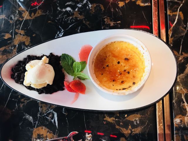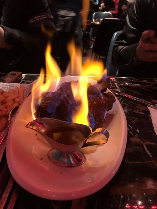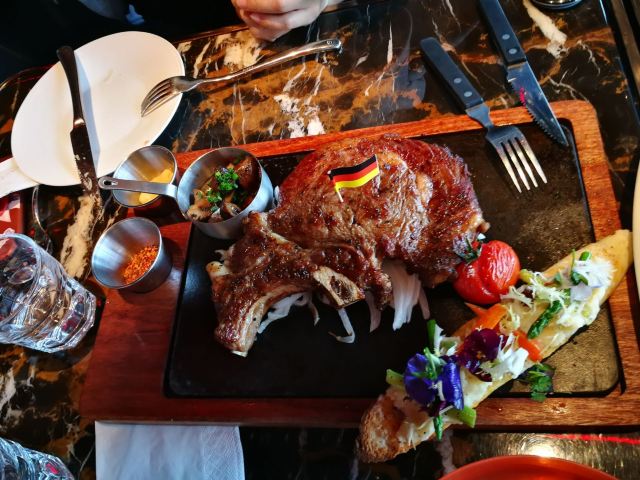 Ruby.Jin提前2周打电话预定了座位,结果当天到达餐厅的时候才5点多,离我预订的时间还有很久呢!还好可以提前坐下。滨江大道上的餐厅,自然是有不错的江景可以看的,就是夜幕即将降临,但是还没有到开灯时间。餐厅名字是“汽车餐厅”,所以餐厅里都是各种汽车元素。刀叉都是扳手造型。很多座位上都放了“reserved”牌子,也确实人气很旺。 我们点了1份小色拉、1份经典混合拼盘、1杯黄啤、水果风味火焰饼、焦糖布丁与香草冰激凌和1杯无酒精鸡尾酒。最喜欢混合拼盘,里面含黑毛猪肋排、鸡中翅和油封鸭腿。猪肋排有一点点辣,但是因为实在美味,我家从来不吃辣的小朋友竟然吃了2小块,因为烤得非常入味。最后的甜品其实我想点那个“当心硌牙”,但是怕太多我们吃不下,主要是费用是一个一磅的蛋糕的价格,有点心疼。焦糖布丁的味道么,当你尝试过言盐西餐厅的焦糖布丁之后,我真的不知道还有哪里的焦糖布丁能与之匹敌了。