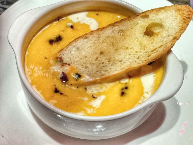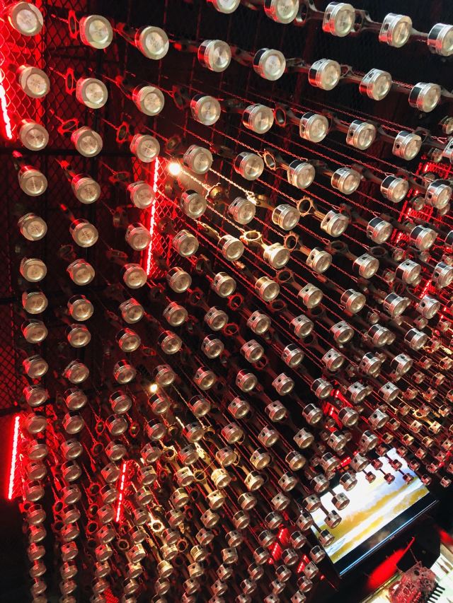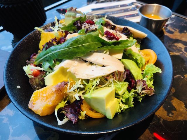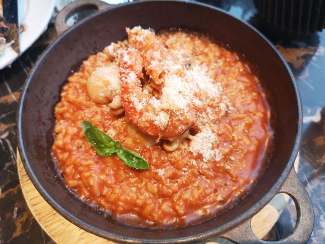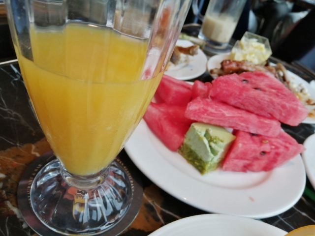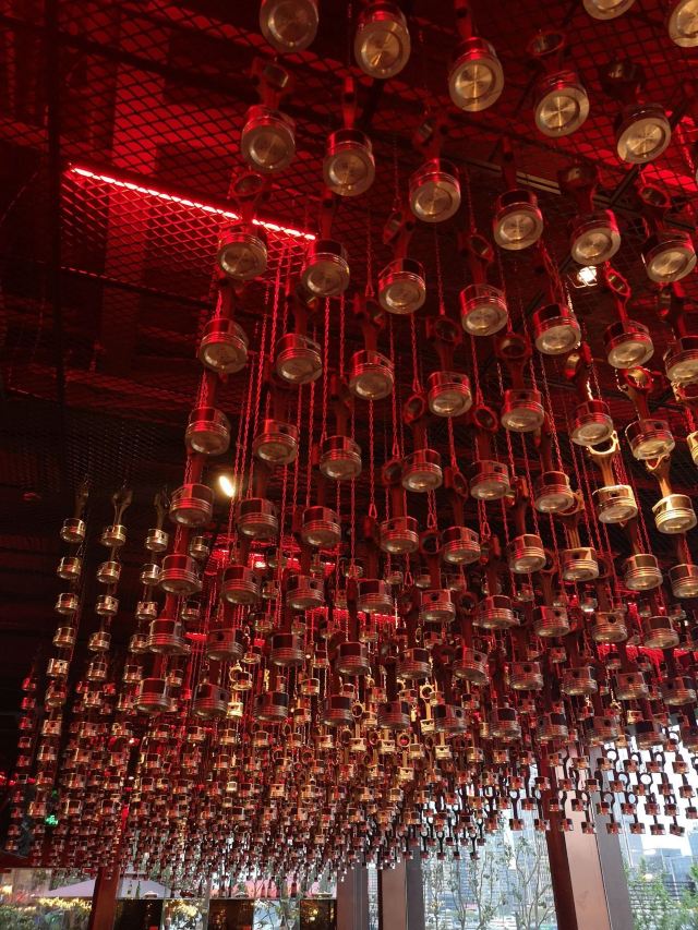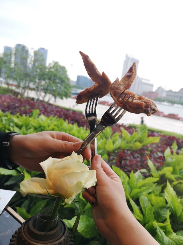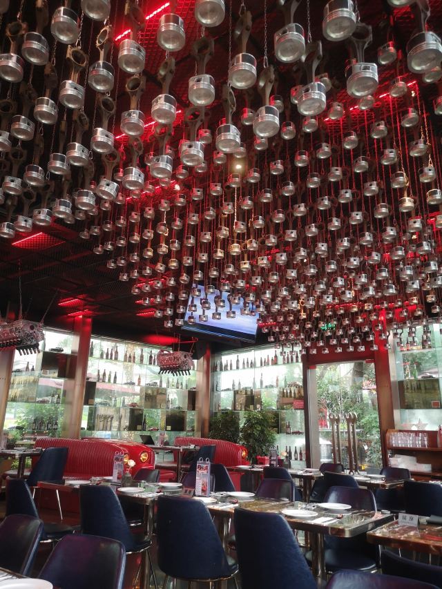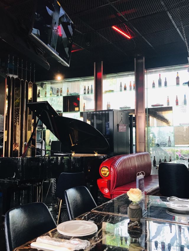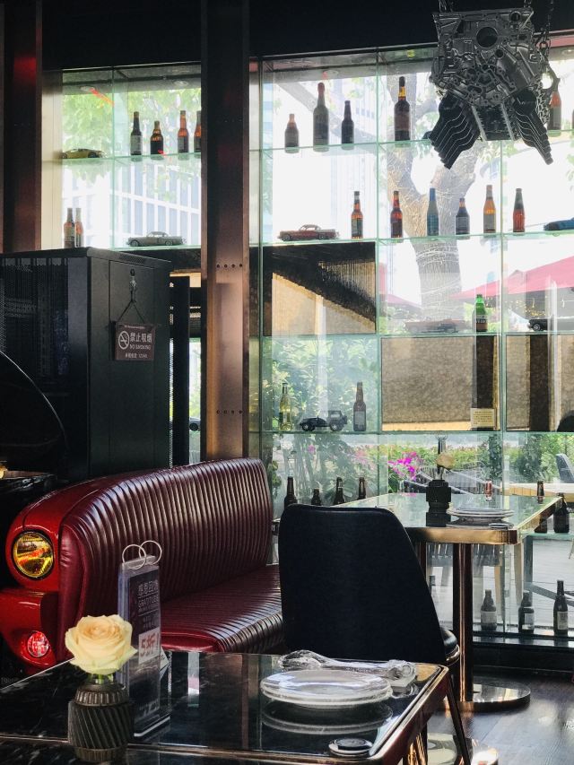 pinko酱滨江沿岸的汽车主题餐厅 请来国外友人弹琴献唱 笑容感染 氛围极佳 正大后门进入滨江公园左手边即是 硕大的玻璃落地窗 坐拥无敌江景位 点了杯橙汁 餐前面包篮敲丰盛 扭结、杂粮、小餐包三款任选 还配小罐松露黄油 「雪蟹牛油果鲜芒沙拉」满满的雪蟹 新鲜的牛油果 甜蜜的鲜芒 三种搭配敲丰富 鲜甜酸三味 是喜欢的沙拉 「火焰烤猪肘」上桌点燃 火焰窜起 效果到位~猪肘的肉质细腻鲜嫩 搭配的土豆泥和酸菜可以解腻哦 「混合香肠拼盘」欢迎新加入的黑松露香肠 我吃到的芝士香肠 切开有爆浆感 搭配土豆油酥和酸菜解腻 「火焰烤鸡」姿势撩人的烤鸡 上桌也是点燃 火焰 整鸡服务员会帮忙拆下 表皮细嫩 肉质香嫩 噱头比较足 「墨鱼烩饭」墨鱼QQ的 很讨巧;表面撒有芝士碎 和烩饭搅拌一起 米饭有一丢丢夹生感 整体偏淡 「水果风味火焰烤饼」有芝士的咸香 有水果的清甜 有烤饼的薄脆 三者融合美妙至极 「焦糖布蕾配香草冰激凌」表层的糖脆搭配细腻布蕾 香草冰激凌伴有奥利奥碎 香甜不腻 可以说 环境是分店里最出色的一家了