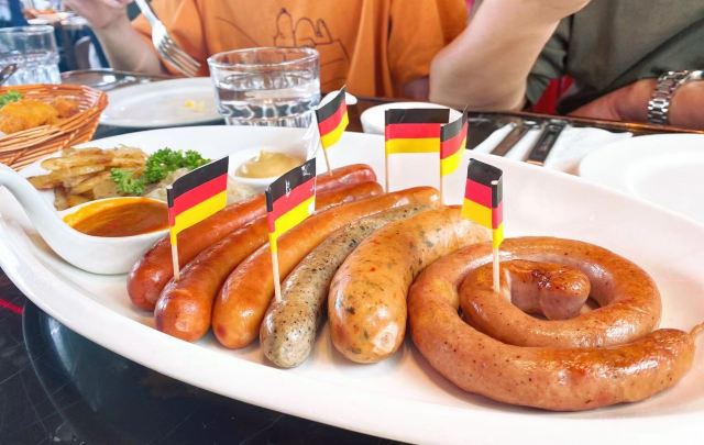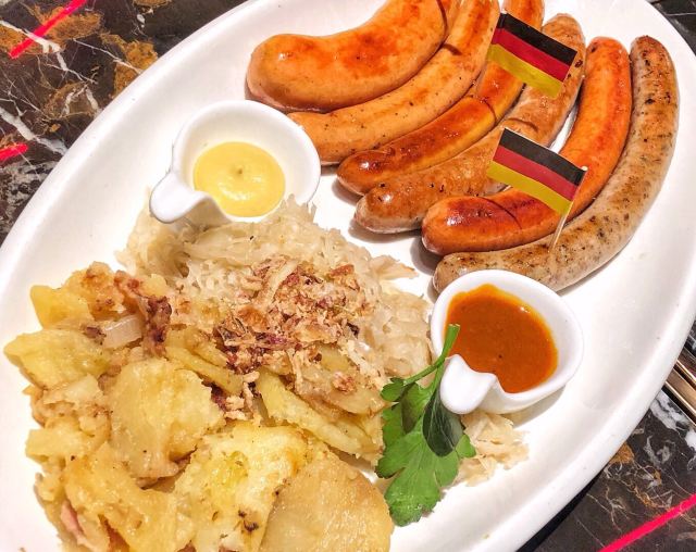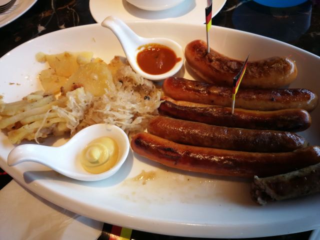 烤猪肋排,雪蟹沙拉,德国烤猪肘,奶油蘑菇汤,自酿黄啤,田园蔬菜色拉,香辣烤羊排,火焰烤鸡,香肠拼肋排,面包篮,炸薯条,水果拼盘,奶油南瓜汤,火焰猪肘,香肠拼盘,水果风味火焰饼,风景,生啤,低温慢烤澳洲牛肋排,自酿白啤,巴伐利亚烤猪肘,奶油土豆泥,德国猪肉香肠