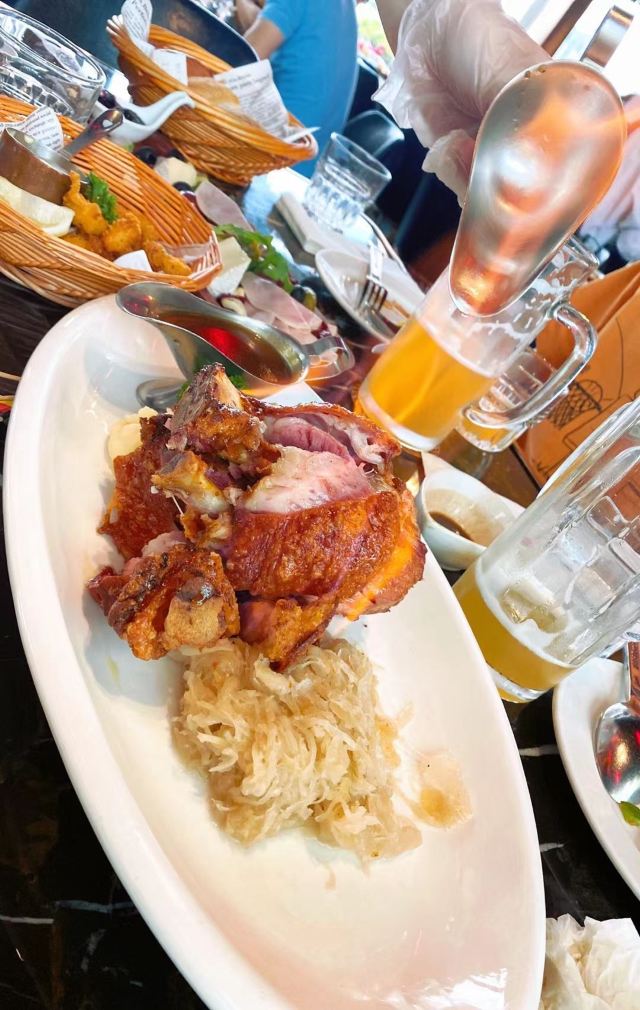 又来滨江1886德国汽车餐厅,江景风光无限好,环境也很好,即使是工作日,室内和室外也都坐满了。推荐巴伐利亚烤猪肘,还有水果风味火焰饼,额外又点了一杯黄啤,菜的味道很好,颜值又高,晚上来这里非常舒适,还能在滨江散步走走,感觉很不错