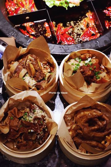 Sasa0828魔都口味最正宗的重庆火锅 很久没有吃蜀大侠了 今天四川的朋友来上海 让我推荐一下我们这里比较正宗的重庆火锅 第一个想到的肯定就是蜀大侠了 无论是环境还是口味 都川味十足 朋友一定喜欢 九宫格原味锅底 既然来了蜀大侠 还吃什么双拼锅呀 必须来一个全红锅 九宫格的造型简直霸气十足 以牛油 花椒和辣椒为主 搭配店里的特色底料 虽然辣 但却好吃到让人停不下来 辣卤系列 这个系列是蜀大侠新推出的 品种还挺多的 有7-8种不同的卤味 每个卤味都是用小蒸笼装的 可以直接吃 也可以放锅里涮了以后再吃 最喜欢吃的就是牛小排 口感鲜嫩 辣度适中 贵妃牛肉 红彤彤的牛肉中间放了很多牛奶 把牛肉放进锅里前记得先蘸点牛奶 随后再下锅 煮个几分钟就可以吃了 不得不说 加过牛奶的肉肉吃上去就是嫩呀