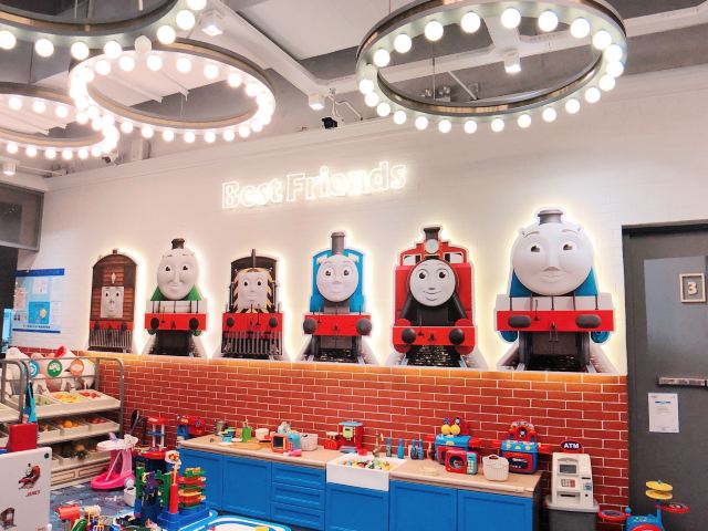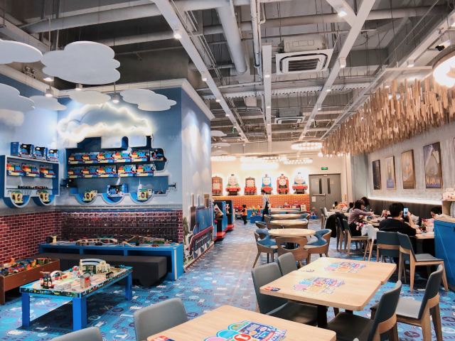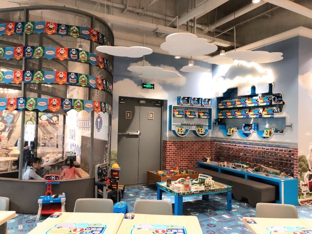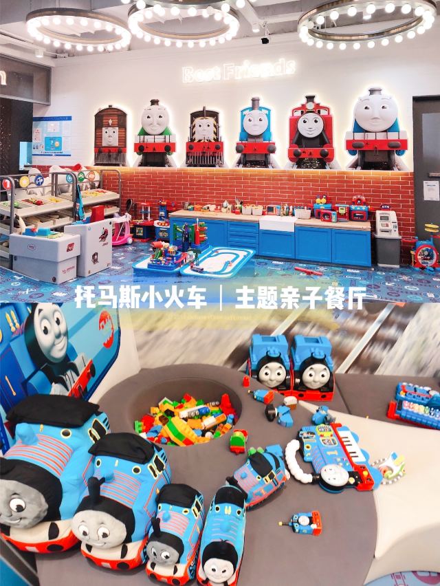 Tuo ma si xiao huo che zhu ti qin zi Restaurant🚂呜呜呜!打卡托马斯亲子餐厅咯,走到餐厅门口就能看到托马斯玻璃窗贴,扑面而俩的蓝色托马斯主题! 🚂进门三部曲:宝宝有专用小凳子洗手🧼、量体温🤒️、脱鞋🛅,大人换拖鞋就可以入场。婴儿车可以直接留在门口,服务员会帮忙停好。 🚂进入餐厅以后全蓝色系布置、充满了托马斯元素,喜欢托马斯小火车的宝宝真的会无法自拔😂。餐厅整体是L型,就餐区域就在中央。这家的菜单偏向正式西餐,菜式、类别比其他亲子餐厅多,摆盘考究味道不错,但是走精致路线量不大的哟。 🚂餐厅一角有独立的小童玩耍区域,连接着沙池。在另一边,则有海洋球池和滑梯。沿着餐厅走,会经过托马斯轨道小火车,满墙模型大人看到都要走进多看两眼。 🚂餐厅走到底就是过家家、厨房、开小火车的区域。也是满满的托马斯小火车玩具,简直是托马斯迷的天堂。 🚂这家餐厅虽不大,游乐区边上却有配套的母婴室🚼和洗手间🚻,这样的设计很人性化,当然这里也是满墙的托马斯小火车主题啦。 📍坐标:金虹桥商场4楼(5号电梯直达) 🏠地址:上海市长宁区茅台路179号 🈺️开放时间:10:30-21:00 🚇公交:地铁2号线娄山关路站 🅿️停车:地下车库10元/时,会员消费50元免2小时