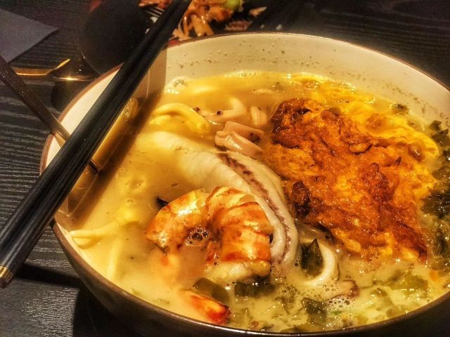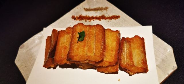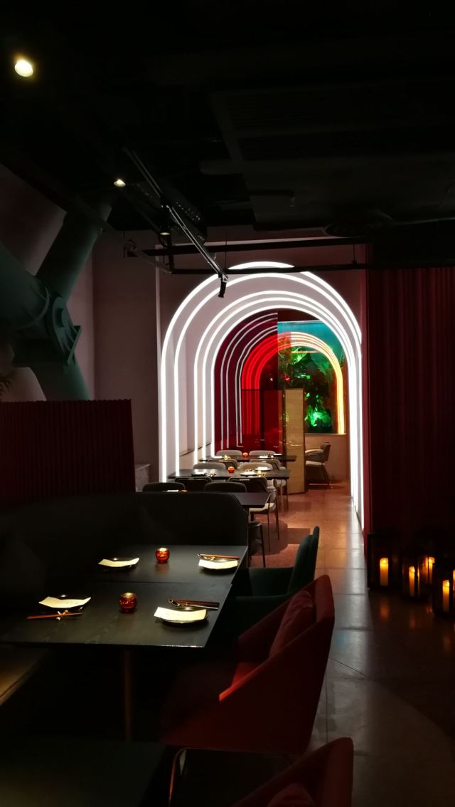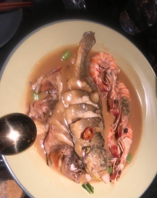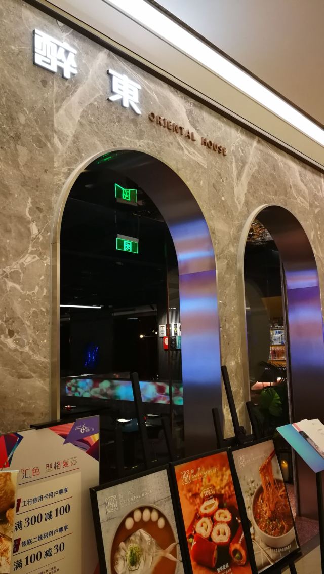 桃桃淘丽丝恒隆正在升级ing,楼下很多商铺还没完全开业,楼上的餐厅生意都很红火,主打台州菜的醉东,走的是夜店装修风格,服务员都身穿制服,腔调满好的; 进店安排了吧台对面的座位,看着调酒师忙碌着,出品的饮料颜值都很高吖; 招牌菜都点了,从摆盘到菜品都挺满意,️雷点,放心大胆的点吧,难办尝尝不一样的烹饪方式也是不错的; 鱼饼是冷菜,点单的时候没注意,这个有点吃不惯吖,鱼饼还是喜欢吃热的; 脆皮肥肠,色泽喜人,处理的很干净,真的是一口脆啊,下酒菜的首选; 沙蒜豆面,耳闻很久了,这次终于吃到了,蒜香味那个浓郁啊,粉丝完全吸收了精华,连吃两碗不算多 年糕烧东海鲳鱼,鱼肉戳下去有弹性,不愧是盛产海鲜之地捕来的,就是新鲜,年糕的口感更像小圆子,软软糯糯,很️饱腹感; 雪花牛肉炒饭,上桌的时候,其实已经吃不大下了,挖了一小口,炒的太香了,牛肉入口即化,看着样子不太起眼,其实好吃的不得了; 人均300不到,综合地段,服务,环境,菜品而言,其实是相当高的啦!