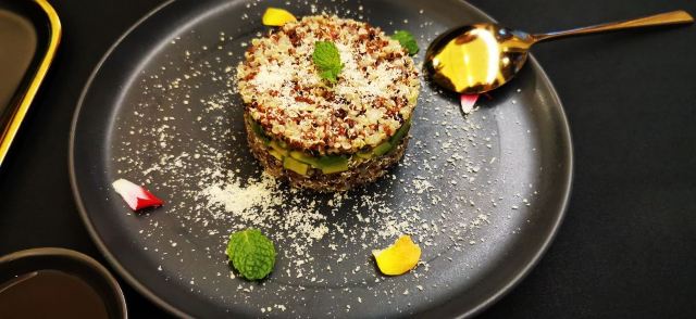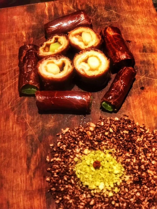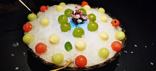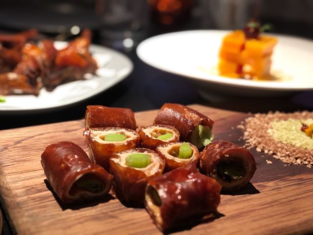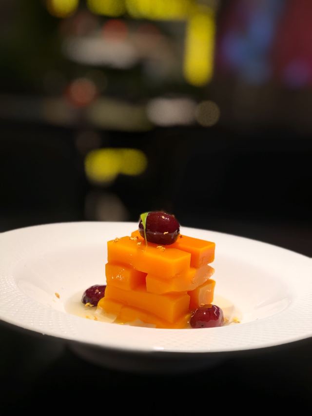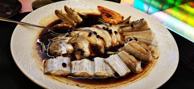 沙蒜豆面,鲜送大黄鱼,脆皮肥肠,香酥小牛肉,台州渔家烧三鲜,醉东炸鸡,水煮龙头烤,爆炒鱿鱼圈,香煎带鱼,蚵仔煎,台州炒米粉,Osmanthus Cocktail桂花酿,The Orient东方,麻婆豆腐,脆皮乳鸽,一个苹果,土豆明太子,避风塘口味香爆牛蛙,江南红烧肉,年糕烧鲳鱼,顺德水牛奶卷,猪油渣虾干炒广东菜心,炝拌小鲍鱼