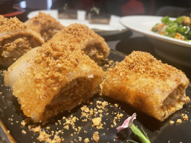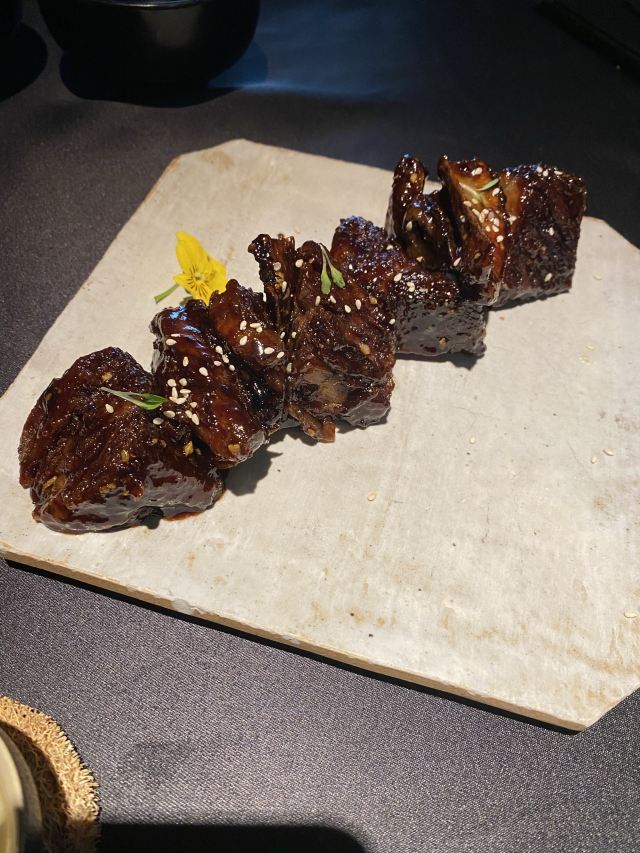 Zui dong Oriental House (ganghui)「醉東」2022入围餐厅,主打台州菜系。 每次路过都看到他家那队排的叫一个长,都没能最终吃上。这次直接提前电话预约了位置[调皮] 📍地址:虹桥路1号港汇恒隆广场北座5F-540号 🅿️港汇恒隆停车场 [服务铃]服务:总的来说还是很到位的,全程递茶送水的,骨碟也换的很勤。 「一个苹果」 第一次被这家店吸引的就是因为这道很直白菜名,一个苹果。初体验,真是内有乾坤,创意满满的苹果色拉。 「蚵仔煎」 个人比较喜欢吃,中规中矩,觉得是一道不会出错的菜品。 「香酥小牛肉」 并不像点评中说的那么神,炸完以后外层肉质有点硬。还有淋的酱汁过于咸了。 「醉东炸鸡」 一直以为炸鸡应该是肯德基里的那种样子。这个炸鸡感觉更像烤鸡。味道是相当不错,肉嫩味美,而且鸡肉汁水丰富,绝对是必点菜。 「年糕烧鲳鱼」 鱼肉非常新鲜,没有腥味。旁边摆盘的年糕,口感超像 みたらし団子,特别特别喜欢呢。 「黄鱼春卷」 本来想着点他家招牌黄鱼的,可惜已点了鲳鱼,故换成了黄鱼春卷。炸的是外脆里嫩,恰到好处。一口下去,满嘴的黄鱼肉,那叫一个爽啊。