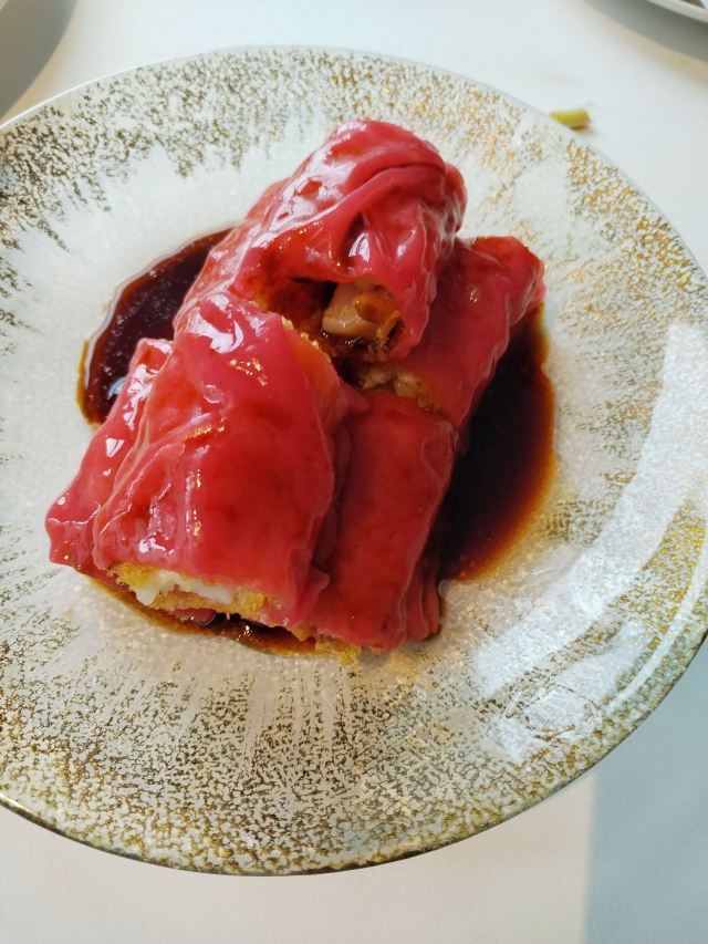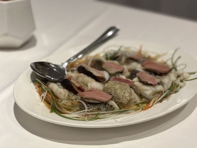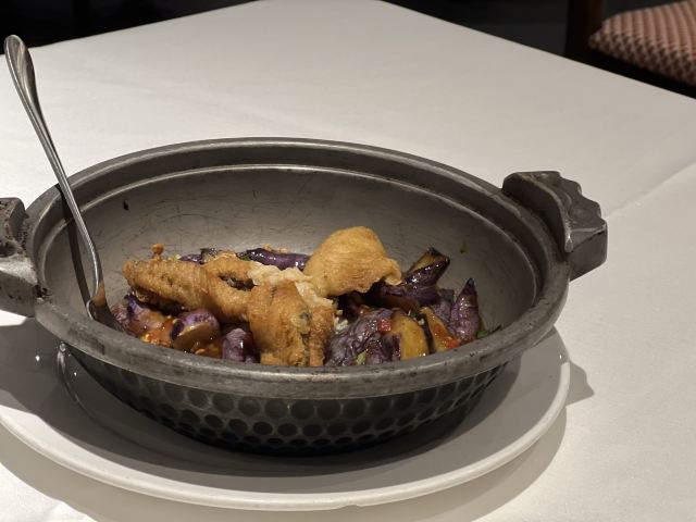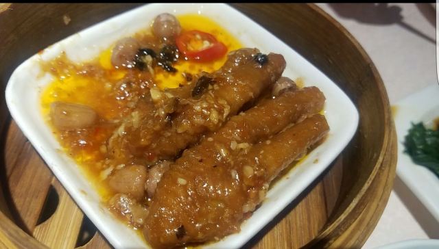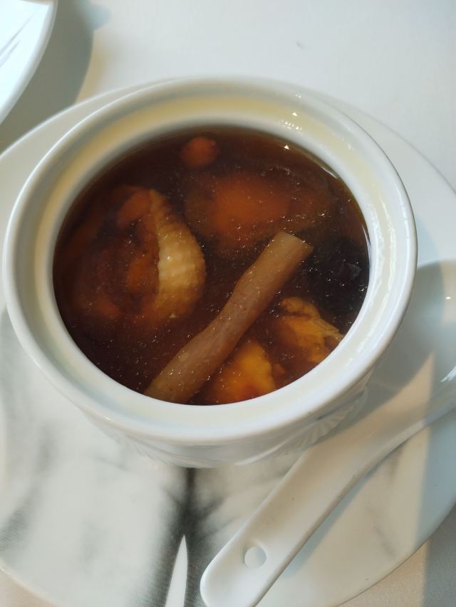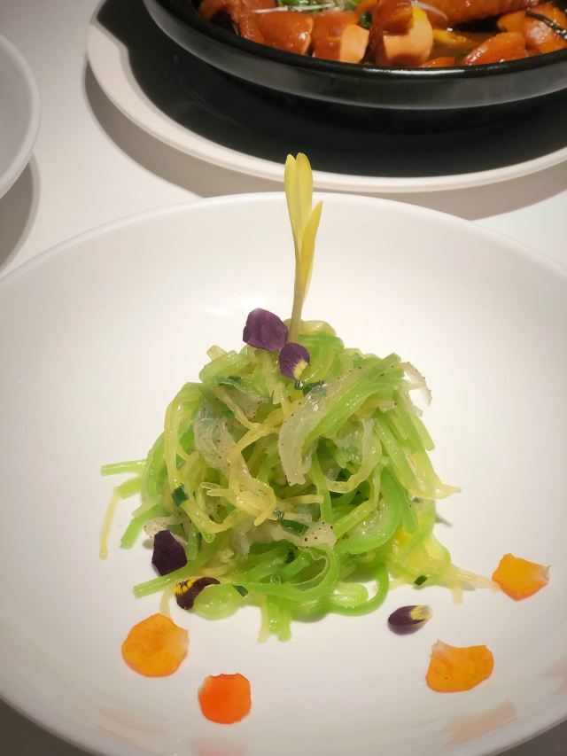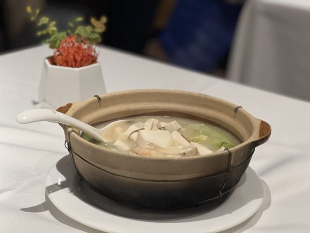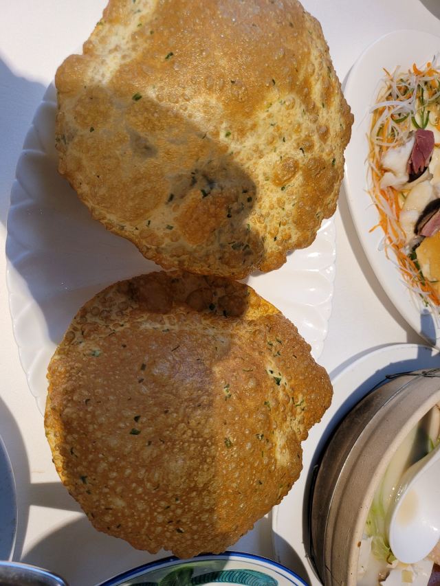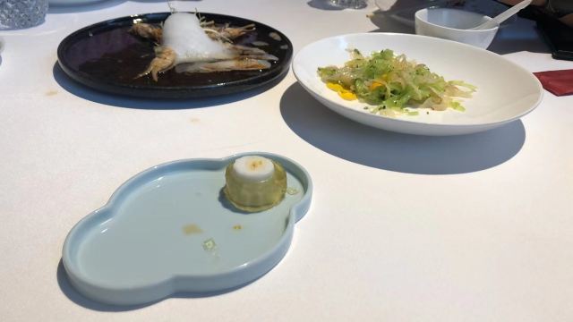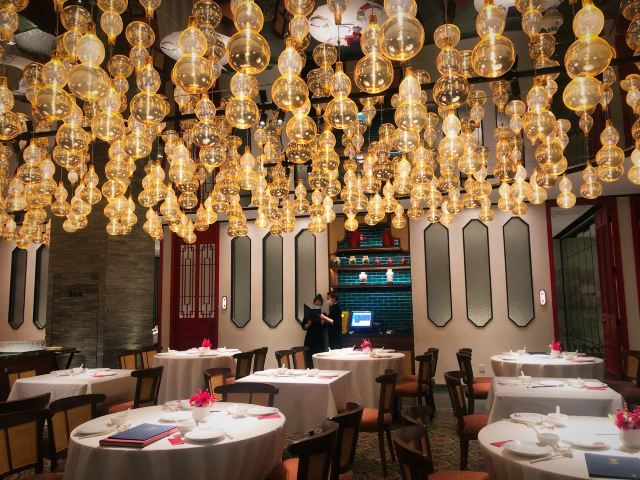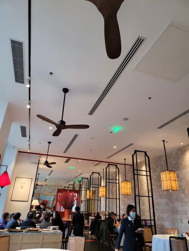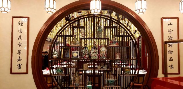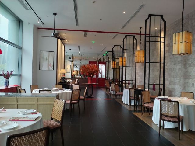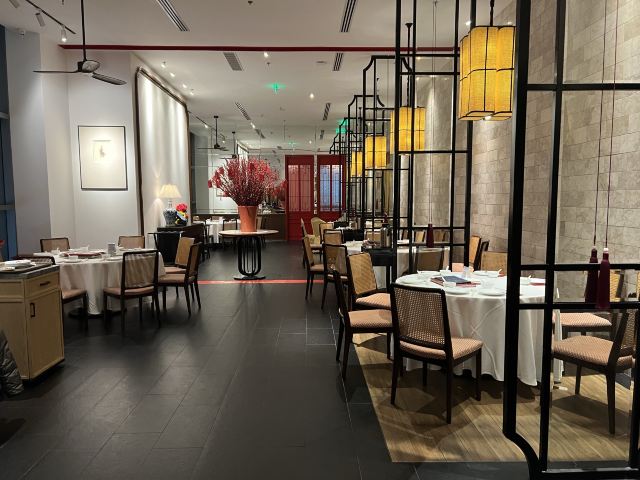 外观很古朴,内部很现代化,很高级的样子。 中午人不算多,坐了靠窗位,窗外是空调机VIEW。 有点心,价格略便宜,份量不大,上菜却很慢。人也不多啊。味道中规中矩,价格挺贵的 服务员很热情,妹子穿的旗袍尤其好看