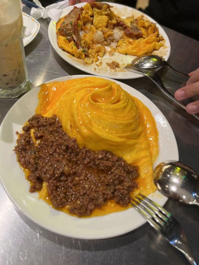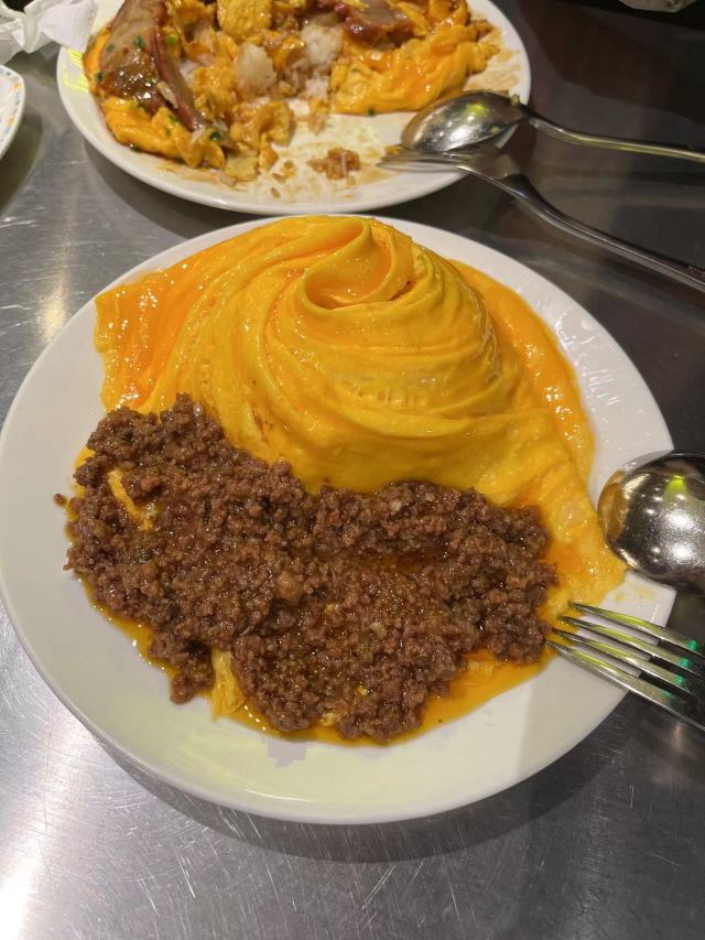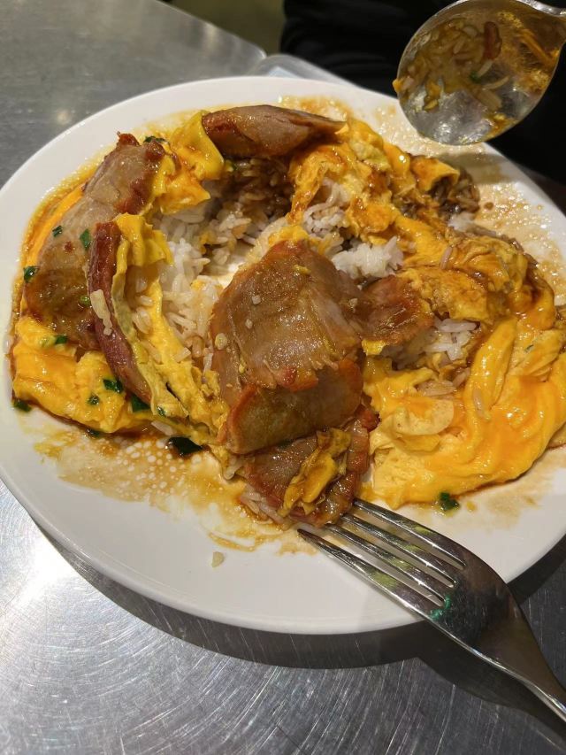 bluecrane【位置】在评弹团旁边,奉贤路和南京西路之间一条小巷子里。在南京西路的路口有一块很"香港"的招牌,转弯进去就对了。 【环境】装修很老香港,从霓虹灯招牌到里面桌椅的摆放,以及贴的条子说明高峰时期要拼座等。 门口还特地写了:本店收港币——可见这里来的港人应该很多。 【服务】晚上十一点,门口还有人排队。也没有人带位,直接告诉我们:最里面。但是还好,倒水、取勺之类的,服务生还是会帮忙的。 【菜品】 |原味木糠凍餅^本来对它没有特别的印象和期待,只是看大家都推荐它,于是点了。果然"群众的眼光是雪亮的",恰到好处的甜,细腻的木糠,不过要趁凉吃,化了就太软了。芒果冰淇淋配在旁边,好像完全是独立的两个甜品,没什么相干。 |華心鮮乳燉蛋白^上菜特别快,慢慢凝固,有点甜。 |榴莲肠粉^这个肠粉和一般茶餐厅咸的肠粉是不一样的,粗糙一些,厚一些,韧性差一些。 |樽裝牛乳蛋白奶茶^不知道为什么,竟然没有热的奶茶,只有这种瓶装的。