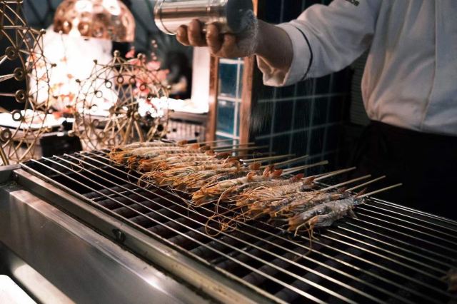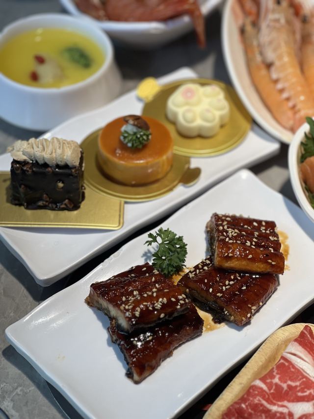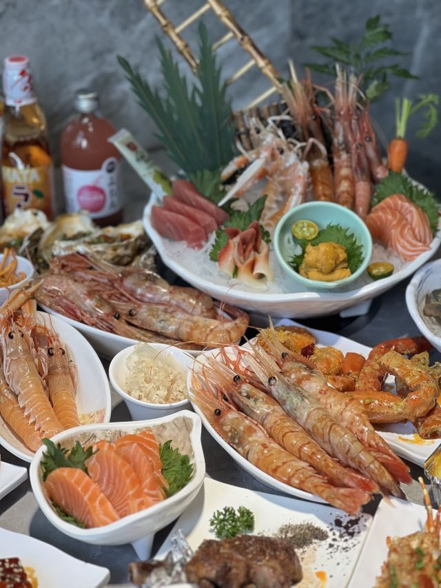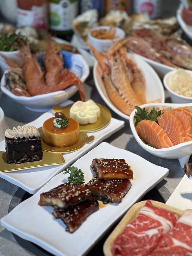 烤生蚝,烤羊排,烤鳗鱼,牡丹虾,鲍鱼,鹅肝,三文鱼,海胆,烤榴莲,冰淇淋,烤虾,烤生蚝,象鼻蚌,小青龙,山竹,象拔蚌刺身,黄金蟹斗,铁板小青龙,帝王蟹腿