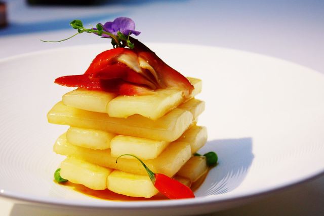 红烧鳗鱼,茉莉花茶熏鳕鱼,糟骨头蒸红膏蟹,葱香蒸翘壳鱼,黑松露烧三宝,雪菜蒸东海黄鱼,鱼子酱醉蟹牛油果塔塔,萧山萝卜干浸象拔蚌,临江酥皮满坛香,上海熏鱼,茉莉花马蹄玉冻酸柑雪,花雕鲜参蒸河田飞鸡,水乡中华鳖,江南小面