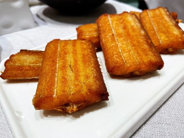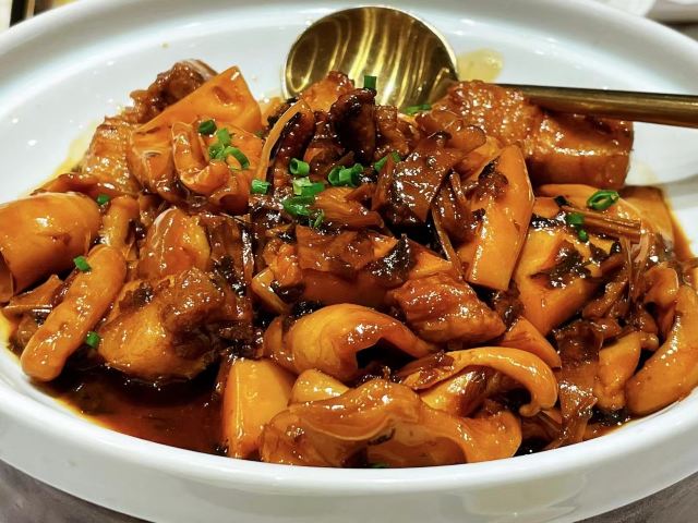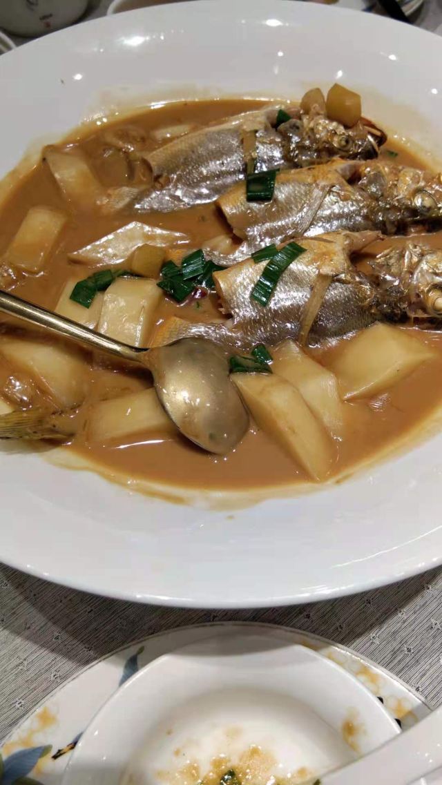 YongFu Mini (Pudong)去年爸爸生日🎂当天来这里吃的,选的是中午到的也很早,基本上算是大厅包场。 开在陆家嘴中心的宁波菜,招牌菜都非常对我们全家的口味。 堂灼十八斩:酱汁是灵魂,醉膏蟹满口都是鲜甜。 喷香芋艿羹 :每人一份,芋艿口感绵密,持续的加热保证过一会儿吃也是温的。 家烧白扁中鲳鱼,沙蒜烧豆面:必点的2道海鲜,中鲳鱼性价比更好一些,沙蒜就是一直以为的海葵,鲜味完全融入了豆面里。 一家人👨👩👧👦选的都是中份,味道一如既往保持水准。 甜品🍮和手工宁波汤团都是他家的招牌,吃下来父母,孩子大家都满意。