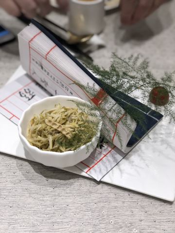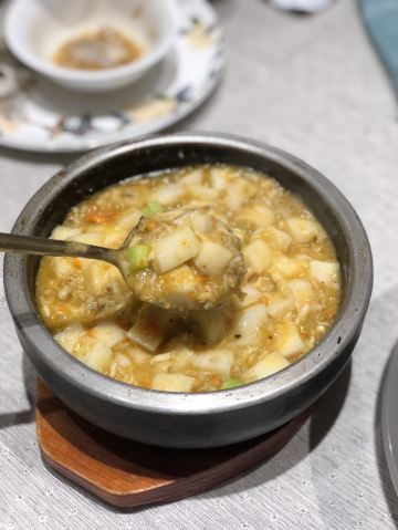 YongFu Mini (Pudong)甬府小鲜的服务真是得到我一再的肯定。菜品的话,属于有些创意味道又不错的。 上菜速度非常快,菜量都不大,特别是招牌十八斩,有点迷你。 带鱼泡饭大份138元,被列为全场最佳。很鲜美,泡饭里还加了些脆香的米粒,带鱼也是油煎过的,吃起来特别鲜香。 白扁中鲳鱼198元,淡淡的,肉很嫩,年糕很糯。 沙蒜烧豆面198元,弹糯的豆面口感很好,喜欢面食的小伙伴们不要错过。 喷香芋艿羹28元/份,清淡的芋艿香,我很喜欢。 话梅仔排78元,古法烧白菜42元,黄鱼手工春卷78元,都挺好吃的。 虽然是宁波菜,但口味一点不咸。都是淡中留香,不重口,这点我喜欢。