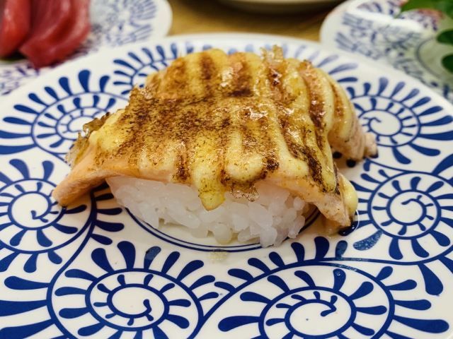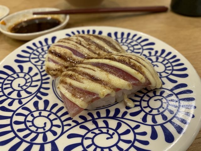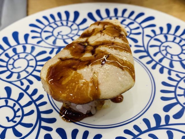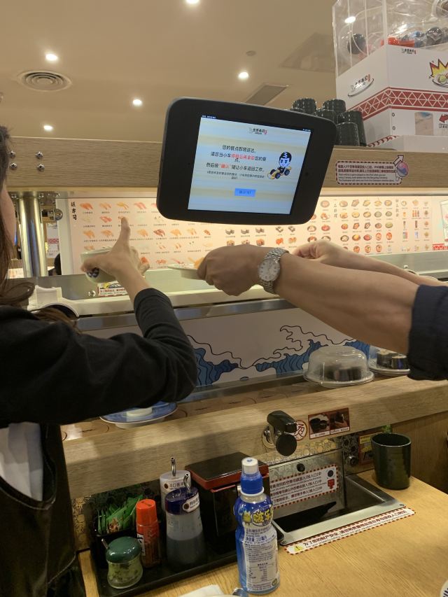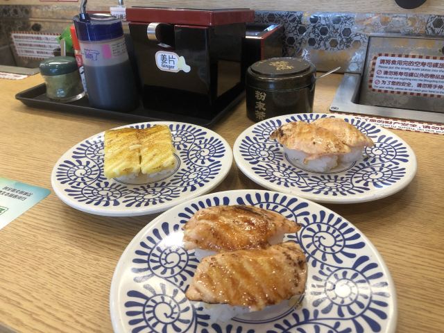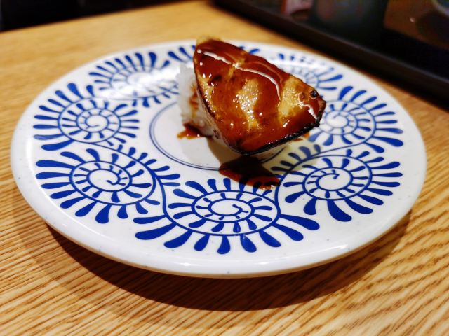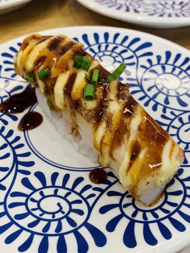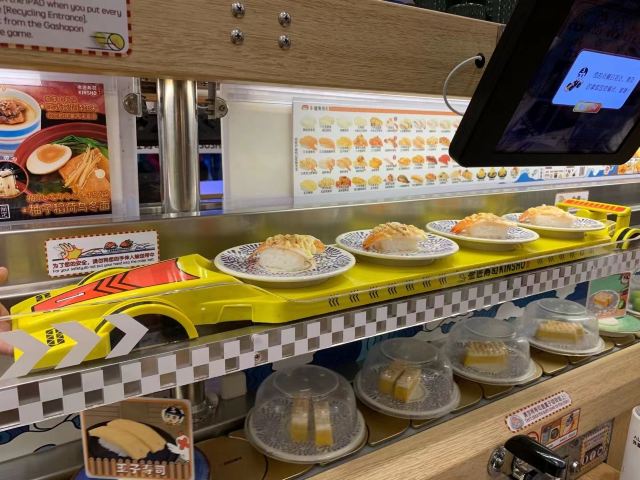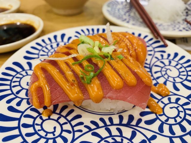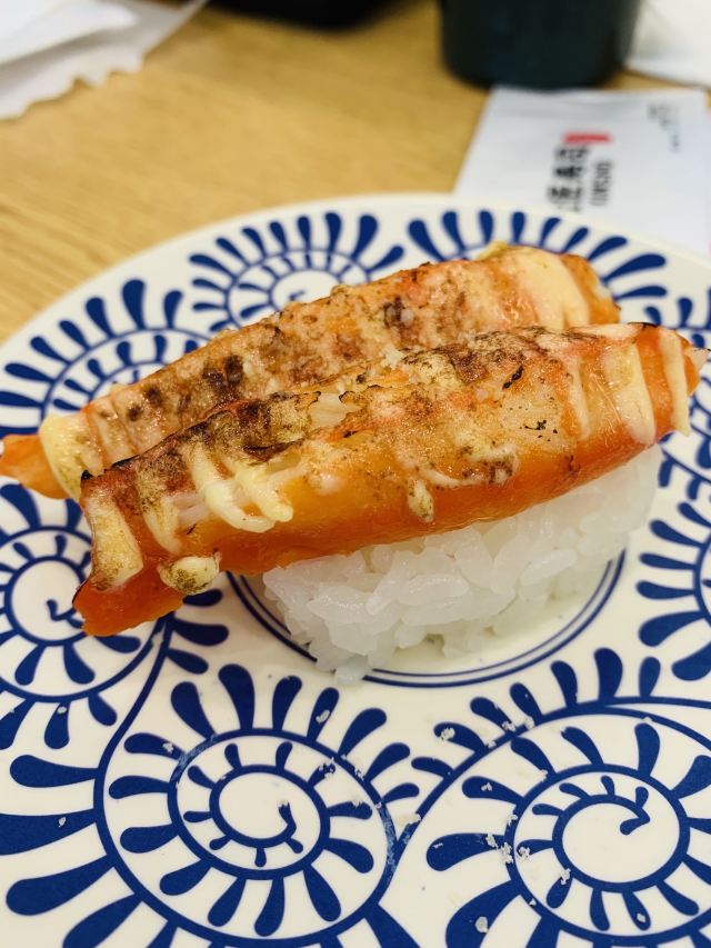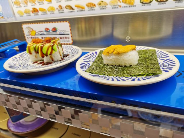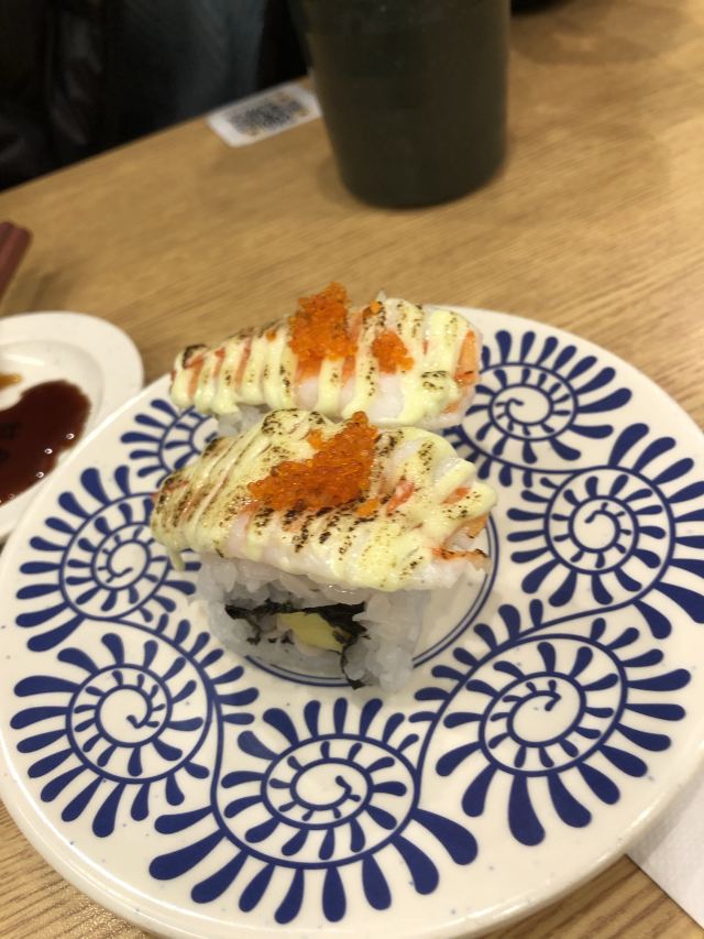 YoYo_5D6E6L6S网红店不愧是网红店,工作日的中午依旧大排长龙。 【店堂】 店面整洁,店员时不时就会打扫并注意着卫生状况。 店堂靠近门口有免洗手液供顾客使用。 【店员】 很热情,会询问是不是第一次来用餐,如果是第一次就会跟你介绍餐具位置与注意事项。 结账时如果是手机支付,可以在iPad上点击“结账”,会有店员过来操作,不需要自己跑出去,很人性化。 人性化2在于,有定位送餐小火车,可以在座位上方iPad上点餐,几分钟后就有专属小火车送餐到面前,不需要等旋转寿司转到面前,可以节省时间,并且是新鲜特制的。 【扭蛋】 没扭到,不予评价,生气气。 【牛油果蒸虾寿司】 口感冰凉,爽口。比牛肉果三文鱼寿司来得清爽。 【火炙焦糖三文鱼寿司】 焦糖爽脆,搭配熟制三文鱼,甜蜜蜜的软糯。 【火炙焦糖玉子寿司】 焦糖爽脆,更甜美。 【南瓜蛋挞】 造型别致,与普通蛋挞不同。 口感冰凉,淡淡的甜味。 【鹅肝寿司】 滑嫩,肥美。