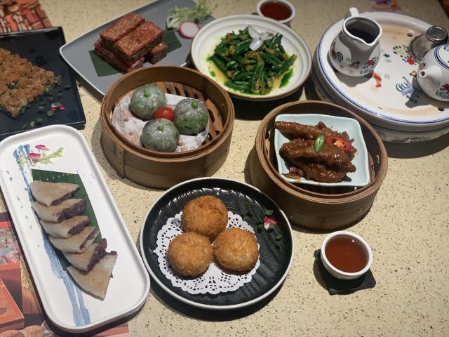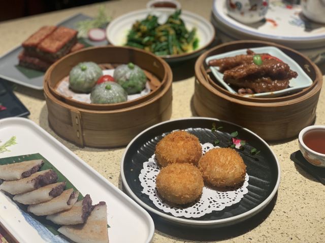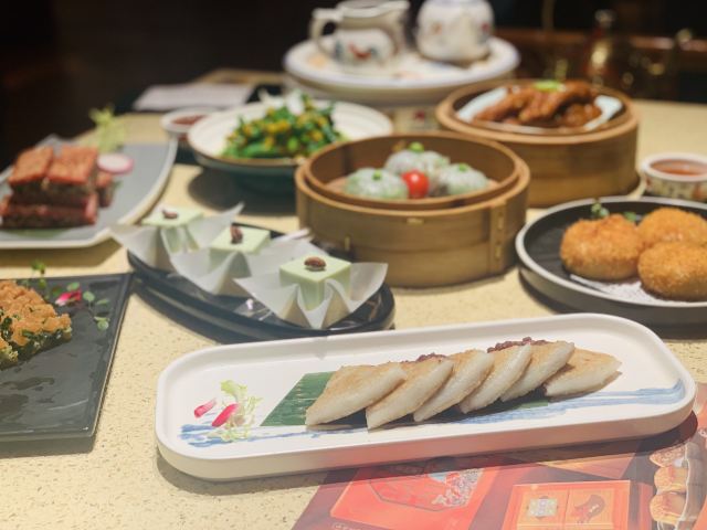 金牌虾饺皇,炒面,松化鸡蛋挞,日式青芥三文鱼挞,普洱茶,流沙包,明虾蟹籽烧卖,榴莲酥,招牌陈醋浸凤爪,香煎萝卜糕,香芒夹心椰子糕,蒸凤爪,金莎海虾红米肠,招牌虾饺皇,百合酱蒸凤爪,乳鸽,荔湾艇仔粥,金牌靓油条,沙爹蒸金钱肚,特色蒸排骨,蜜汁叉烧包,三丝炒面