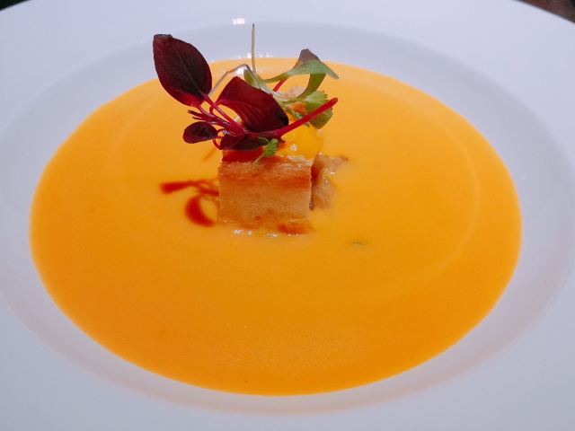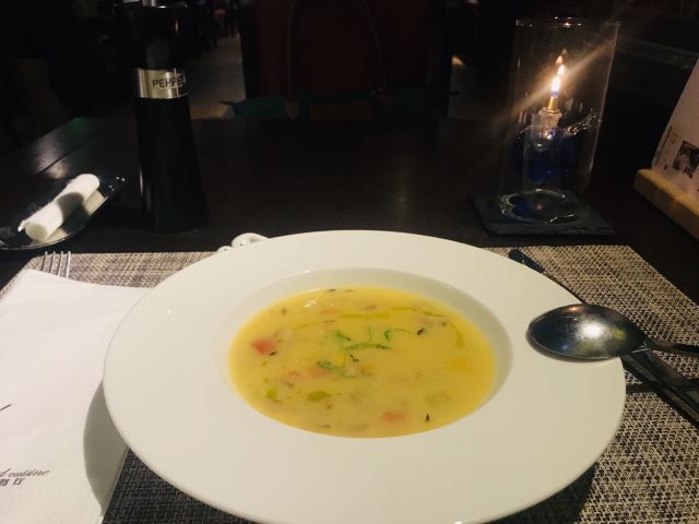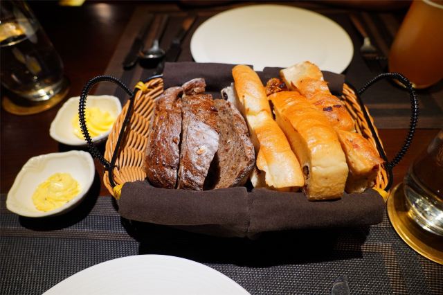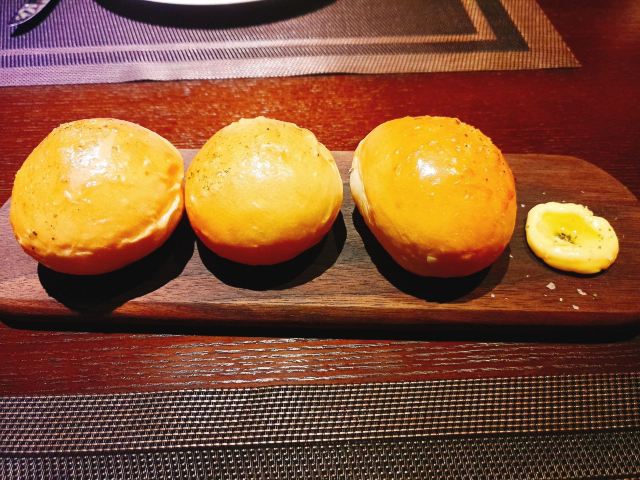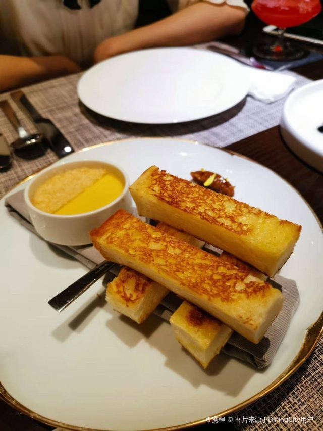 unaxie餐厅周第二顿,强烈推荐! 在老牌索菲特酒店里,法国酒店的餐厅面包基本水准不会差,相比在巴黎西餐厅吃到的餐前面包,这里可能针对国人的喜好进行了调整,面包更加柔软,带有咸香,搭配两种不同口味的黄油,异常美味,我们没忍住又追加了一份。 前菜分量非常大,推荐北海道元贝,鲜嫩多汁,口感上佳。鹅肝慕斯个人不是很爱这种做法,而且略腻,适合鹅肝爱好者。 汤没能品尝到广受好评的龙虾汤,取而代之的是匈牙利蔬菜汤,原本还有点失望,但出色的口感弥补了这一遗憾。 主食都选了牛排,对比整个菜单来说,牛排不能算太出色,毕竟价位在这,但绝对物有所值,熟成度火候也掌握的很好。 最最推荐的是甜品,奶冻已经很出色了,单点的芒果桂花慕斯简直惊艳!好难得吃到不甜齁的法式甜品简直太幸福了! 服务很棒,细节上佳,甚至觉得加服务费值得。 作为生日请好友的一顿,可谓完美。