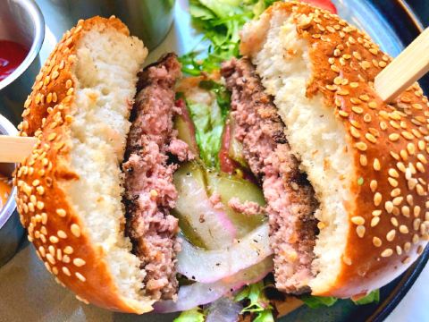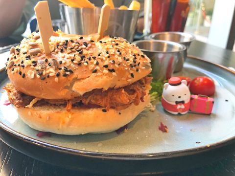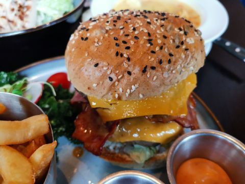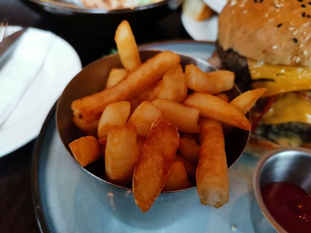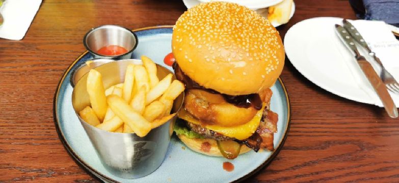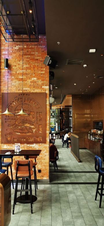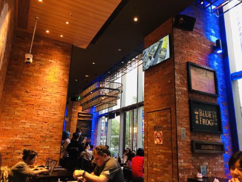 位于上海市凯德晶萃广场的一家蓝蛙餐饮店。这家店环境比较精致和干净,有美式小酒馆的风情。摩天牛肉汉堡里边夹的牛肉是很厚实的那种;薯条炸得香脆诱人;还有特色芝士蛋糕,鸡胸肉色拉,大虾玉米浓汤之类美食也同样是别具风味呢。所以这家店值得向各位吃客们作一下推荐。