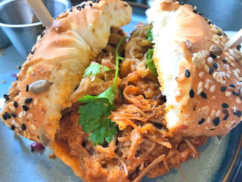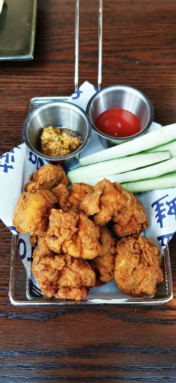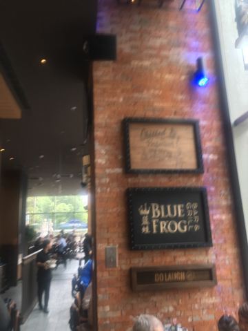 泡泡龙他爸这家店后来又去了一次,从招行拿到一张对折券,找了个下午2点左右去吃午饭。天气不错,室外的座位基本坐满,而且是在背阴处,不会受到西晒太阳的影响,就是有抽烟的,空气很不好,还是坐到了里面的老位置,吧台那边的座位则不够舒服,另外有几个射灯灯光打在顾客身上,使得人脸看上去很怪异。有内部的洗手池,可惜没有感应龙头。要了份蓝蛙炸鸡,加上一小盘墨西哥鸡肉芝士薄饼,薄饼一般,炸鸡出色,嫩、脆、不油腻,配上一杯鲜果百乐门。可以使用招行掌上生活支付,每满一百减十元,加上有张面值100的对折券,花费的很值,就是服务生对这么多种支付方式组合不够熟悉,操作折腾了一点时间。电子发票,自己扫码即可,凯德晶萃目前停车免费,就是下午去一般停不进去