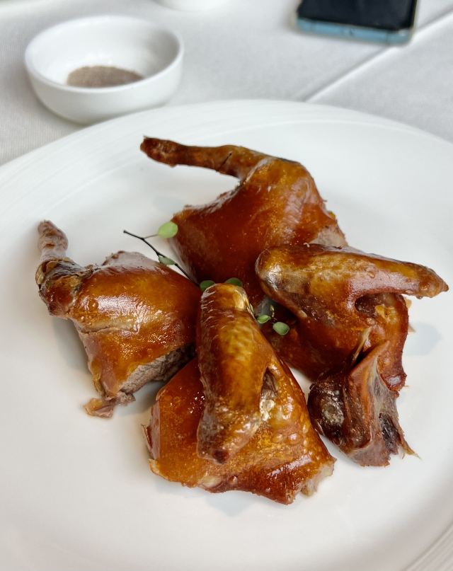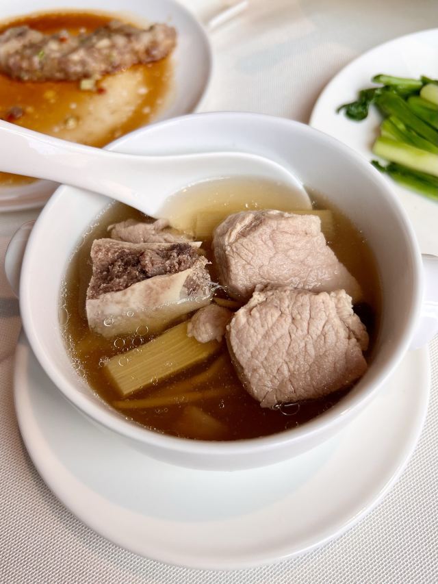 家庭聚餐 环境优雅 靠窗位置没什么景色 但还算安静 服务不错 菜品口味都很不错 深的爸妈喜欢 有活动性价比更高 时令炖靓汤:甘蔗龙骨汤头清甜 和府片皮鸭半只:厨师现场片皮 脆皮乳鸽、和府腊味炒饭:必点