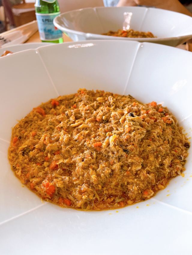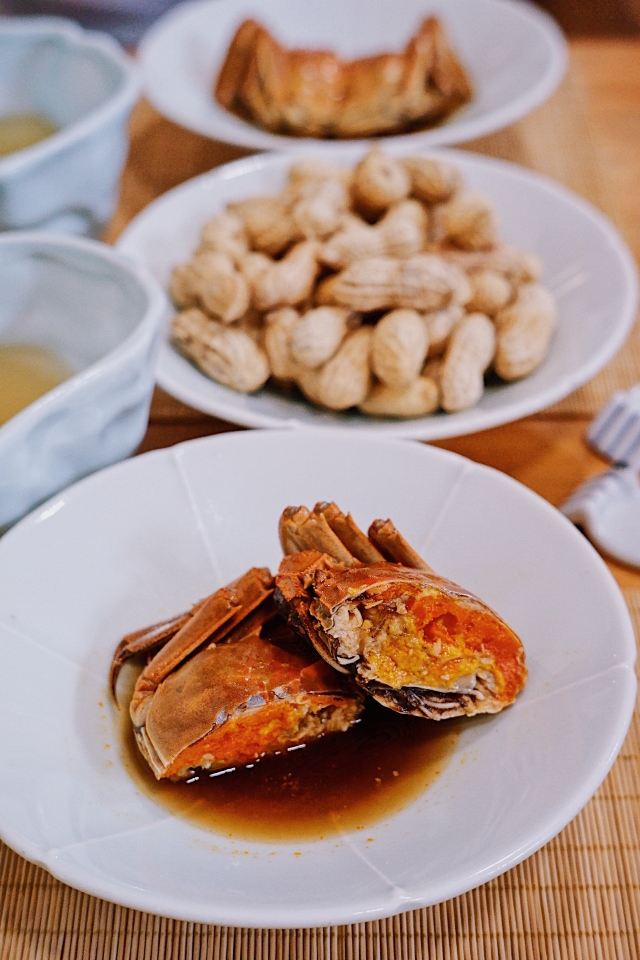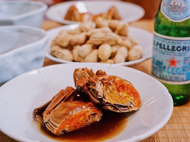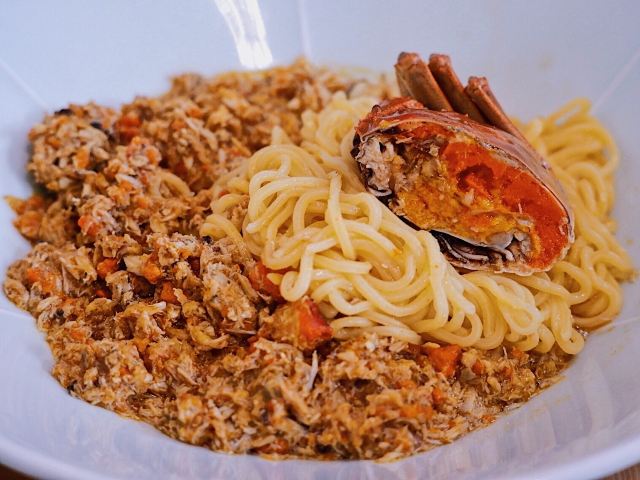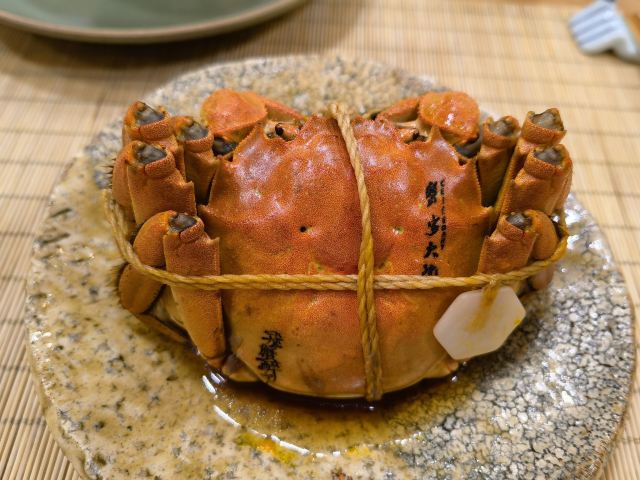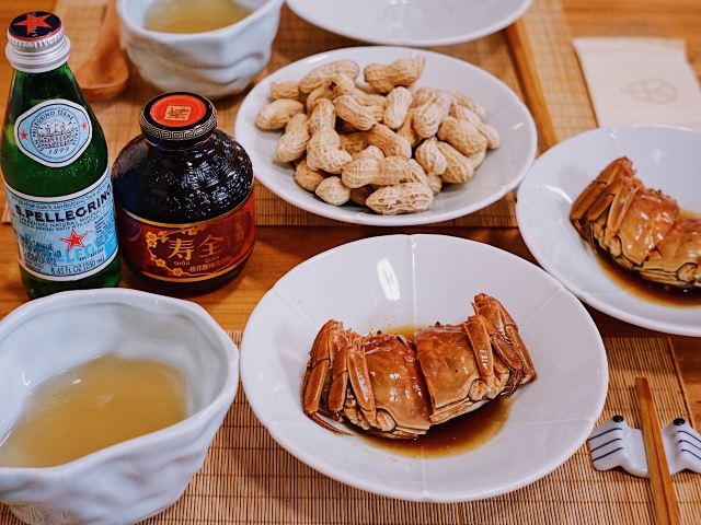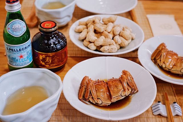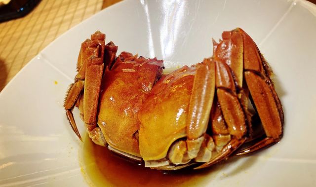 久闻蟹家大院的名声,今天终于来打卡了。 这家滨江店位于黄浦江边,地理位置极佳,周边安静祥和,非常舒心。店铺是新中式的简单装修风格,古朴大气,有靠窗的观景座位,吃面还可以欣赏到外面极致的江景。 「蟹黄金」这一碗三百六十元的蟹黄金面,是镇店招牌,分量也十足,脸盆大的碗里,铺着6公6母12只大闸蟹的蟹黄和蟹膏,份量十足。面条经过调味,Q弹爽口,与蟹黄和蟹膏完美配合,加点蟹醋绝绝子。可以尝得出蟹肉的新鲜,绝对都是当天现拆。 「醉蟹」讲真我第1次吃醉蟹,上桌以后酒香扑鼻,特别肥美,蟹黄超大颗,入口香中带鲜,鲜中带甜,调味的刚刚合适。 店里的服务人员都非常热情,只要看到有需求,立刻就会过来帮忙,要给他们也点个赞~ 除去吃面,在免费提供的小食上也非常给力。姜茶味道很好,喝下去暖暖的,配蟹非常合适。花生嘎嘣脆,非常香,朋友整整吃了三盘还依依不舍。自助不限量的依云水和圣培露气泡水也是一种奢华的享受。 积聚了匠心的蟹黄面,提供了相匹配的高端环境服务,非常值得前来品尝[调皮]