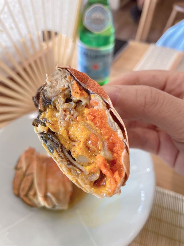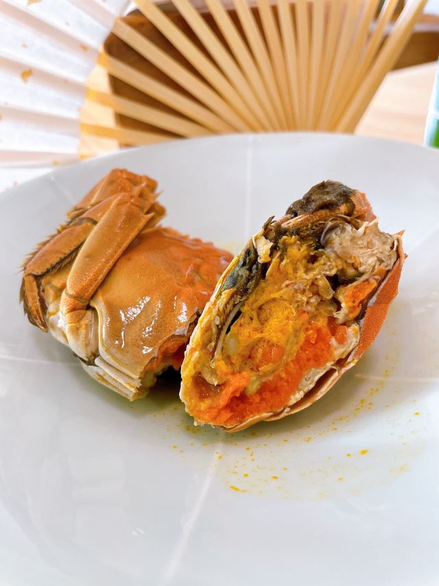 麻辣呱唧久闻蟹家大院的名声,今天终于来打卡了。 这家滨江店位于黄浦江边,地理位置极佳,周边安静祥和,非常舒心。店铺是新中式的简单装修风格,古朴大气,有靠窗的观景座位,吃面还可以欣赏到外面极致的江景。 「蟹黄金」这一碗三百六十元的蟹黄金面,是镇店招牌,分量也十足,脸盆大的碗里,铺着6公6母12只大闸蟹的蟹黄和蟹膏,份量十足。面条经过调味,Q弹爽口,与蟹黄和蟹膏完美配合,加点蟹醋绝绝子。可以尝得出蟹肉的新鲜,绝对都是当天现拆。 「醉蟹」讲真我第1次吃醉蟹,上桌以后酒香扑鼻,特别肥美,蟹黄超大颗,入口香中带鲜,鲜中带甜,调味的刚刚合适。 店里的服务人员都非常热情,只要看到有需求,立刻就会过来帮忙,要给他们也点个赞~ 除去吃面,在免费提供的小食上也非常给力。姜茶味道很好,喝下去暖暖的,配蟹非常合适。花生嘎嘣脆,非常香,朋友整整吃了三盘还依依不舍。自助不限量的依云水和圣培露气泡水也是一种奢华的享受。 积聚了匠心的蟹黄面,提供了相匹配的高端环境服务,非常值得前来品尝[调皮]