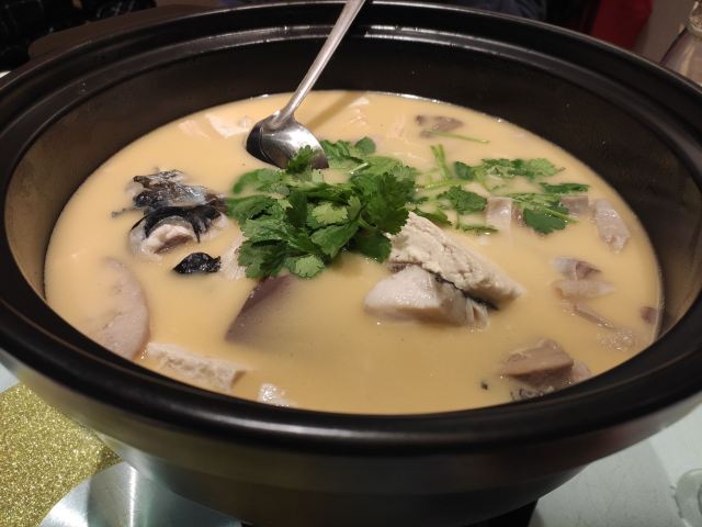 泡泡龙他爸服务还算不错,但也有上错菜的现象。菜的量普遍偏多,也偏咸,有点重口味,但是不算油腻。松江软糕比较受欢迎,外观也很有意思,里面的豆沙不会显得过甜;蒜香蚕豆不错,家里领导最喜欢的则是筒骨炖萝卜,家里小锅没法烧出这样的味道来,而且热气腾腾,正好驱散感冒症状。中午生意很不错,看来有不少附近的上班族来进餐,环境比较好,邻桌基本不会互相干扰。洗手间空间蛮大,干净,无异味。结账要到帐台,还可以顺手卖些松江软糕伴手礼回家,价格平实,开发票要到门口前台,扫码拿纸质发票,扫码拿停车券。就是那个停车券,扫码后输入车牌号码,而后屏幕上就什么也没有了,也不知道是否成功,只能开到停车场出口再说,还好顺利出去。这里离沪昆高速松江东的入口很近,就是停车场出来的左转通道设计不太合理,有违规嫌疑,也不太好开,要小心驾驶
