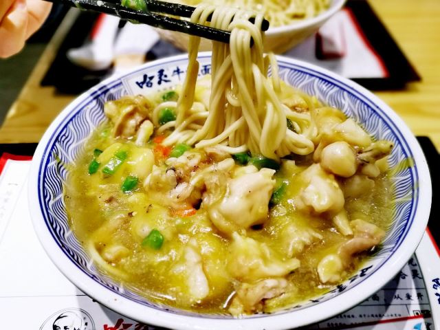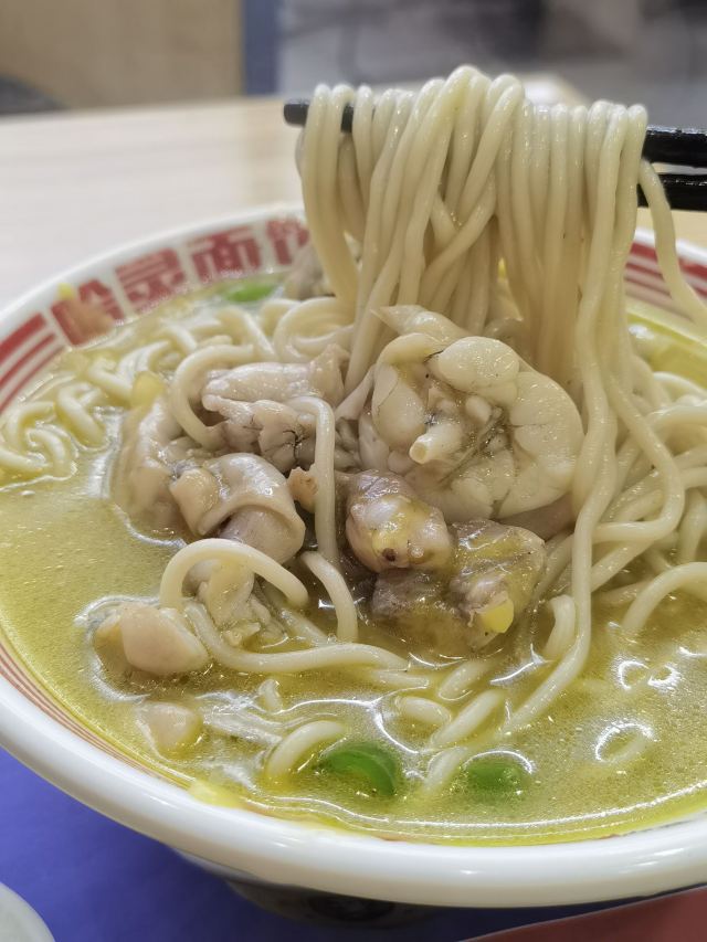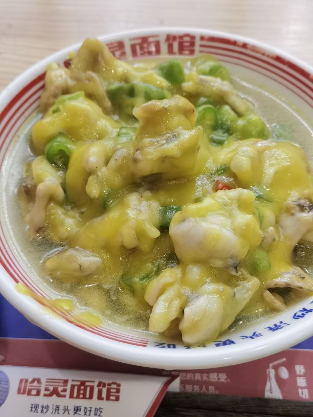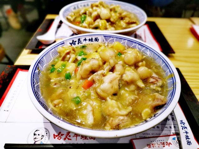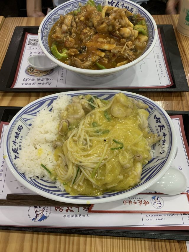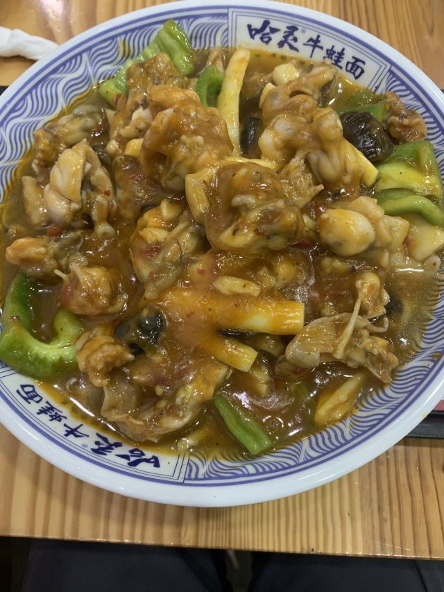 以前就很喜欢哈灵牛蛙面,现在分店多了,生意还是很好,饭点基本坐满了,市井味十足,浇头现炒的所以要等一会! 最爱的还是招牌牛蛙面,牛蛙分量很足,端上来先把面拌匀开了,鲜香入味,牛蛙大块肉嫩,面条粗粗的有嚼劲,一碗就很满足!