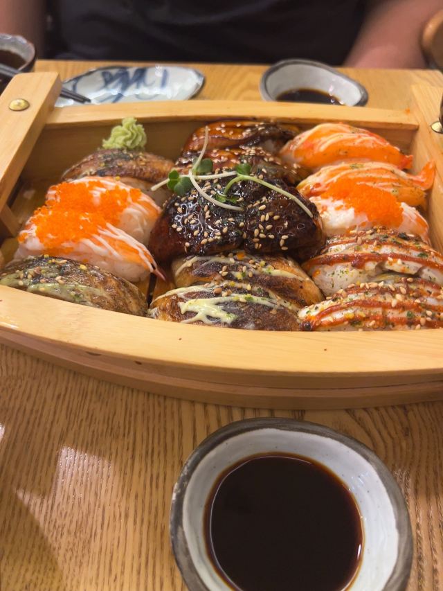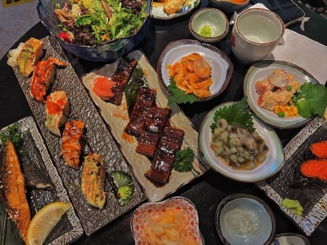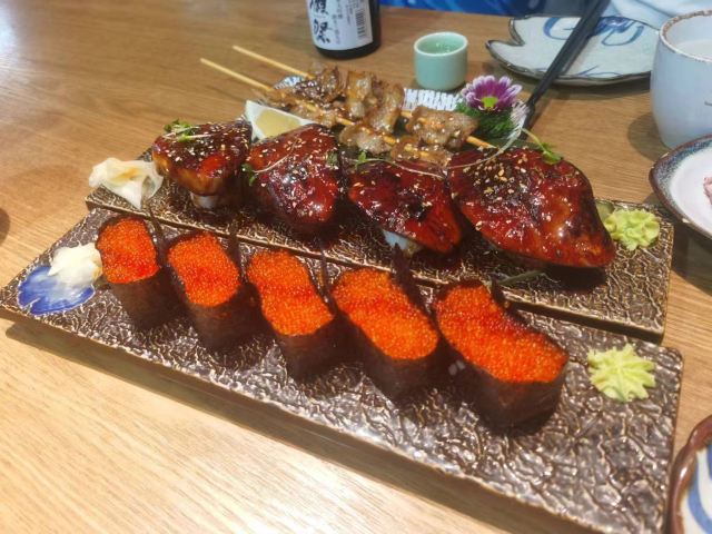 鹅肝寿司,烤鳗鱼,三文鱼刺身,烤蟹宝,一帆风顺火炙拼盘,招牌鳗鱼寿司,烤牛舌—薄切,寿喜锅,芥末章鱼,寿司拼盘,烤青花鱼