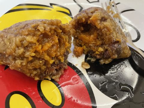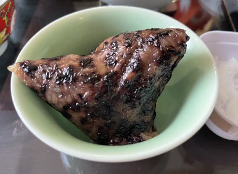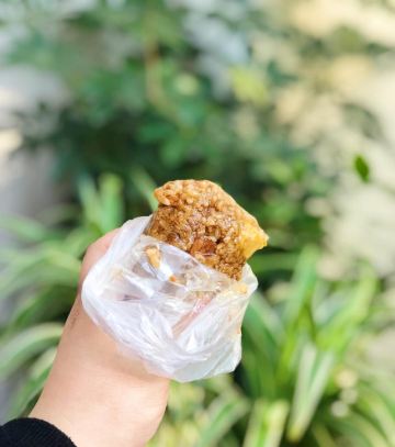 这家店里面的粽子之前听到小伙伴介绍过,正好经过看到了就买了一个尝尝,我买的是大的「鲜肉粽子」,个头不小噢,拿在手里也是实敦敦的,味道我觉得也确实挺不错,粽子的糯米口感软软糯糯不粘牙,咸咸香香的,里面的肉也很大块,香嫩可口。