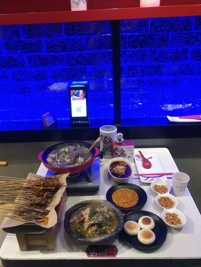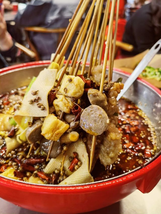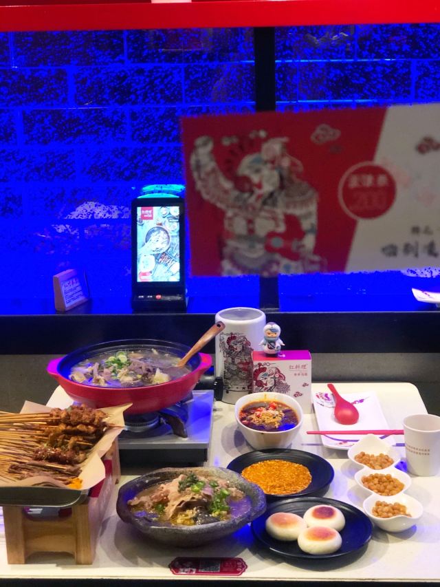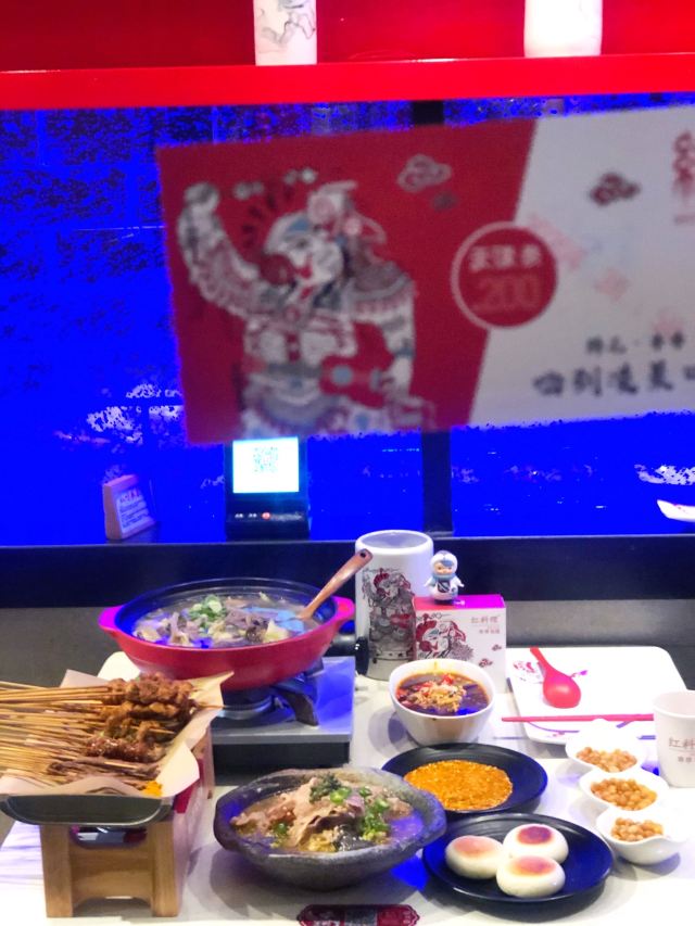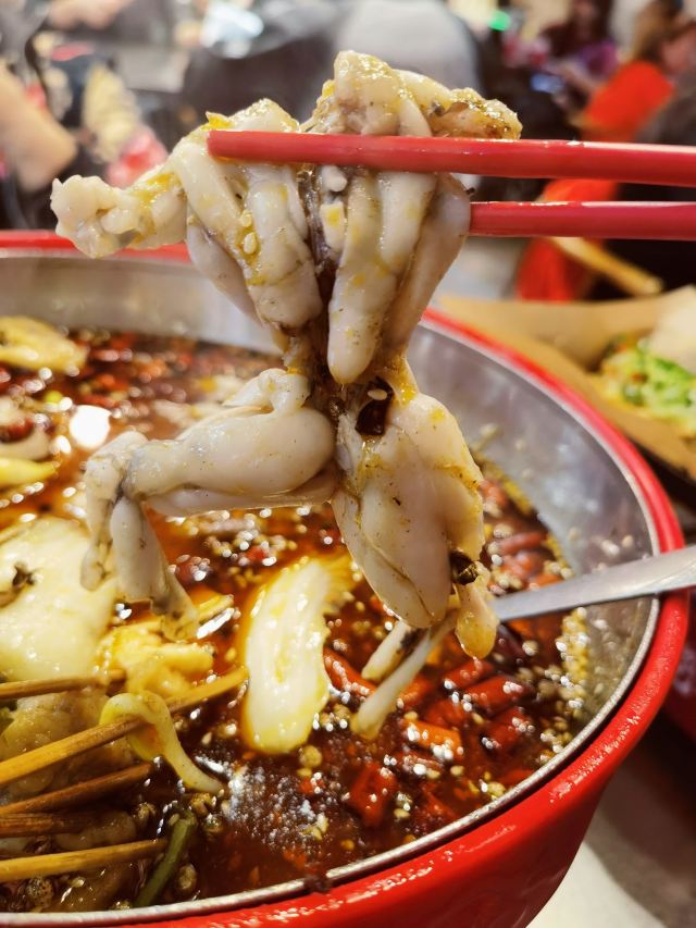 扇贝,带子,灭绝鸡爪,空运毛肚,红糖锅魁,藕片,土豆片,虾滑,蹄花蘸料碟,烤玉米,黄金腐竹,紫苏茶,烫好吃的串串,成都特色锅底,老妈蹄花,牛蛙,掌中宝,鸭血,天府醉豆腐花,烤物,金针菇,冒脑花