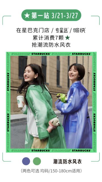 吃饭就别叫我了我要穿上星巴克潮流星装买咖啡啊☕️ 为疫情所困的我们,今年怕是要和樱花季完美错过了,但清明雨季却是无论如何都躲不过的🌧幸好,我有星巴克为我遮风挡雨☔️ 在小程序里看到最新一期追星站活动,星巴克春季限定潮流星装3/21首发🧥防水风衣完全不用担心拖垮颜值,随手塞在包里也完全不占地方,未雨绸缪让你有备无患🌂 讲真,对于离不开咖啡的魔都人而言,一手咖啡一手雨伞实在是两难🤷🏻♀️有了这件轻盈外衣,就能随时冲进超市利索地抢菜🥬也可以来一场说走就走的春游野餐⛺️ 万万没想到,竟然还有为公仔定制的迷你款,被可可爱爱的Q萌春装瞬间戳中萌点🧸也太太太星动了吧🌟 话说,星巴克潮流星装只送不卖哦,下面给有星人们划重点👇 💚第一站🔛3.21~3.27🔚 门店/专星送/啡快累计消费7🌟 🉑️抢潮流防水风衣(绿/紫2色) 🟢第二站🔛3.29~4.2🔚 专星送/啡快累计消费5🌟 🉑️抢潮流迷你外套(粉/绿/紫3色) 必须夸一夸这一波追星站活动真的太有心了,不仅好看还很实用呢👏我要穿上星巴克潮流星装买咖啡啊☕️