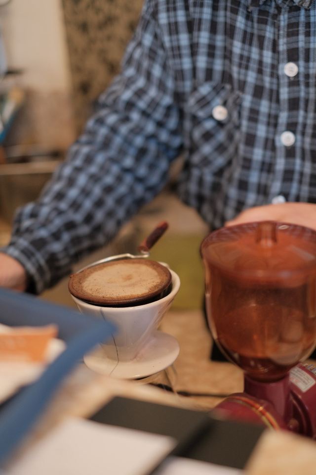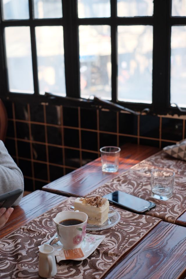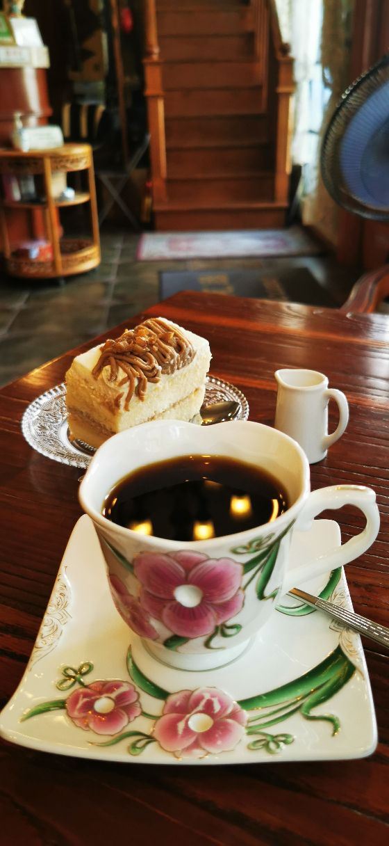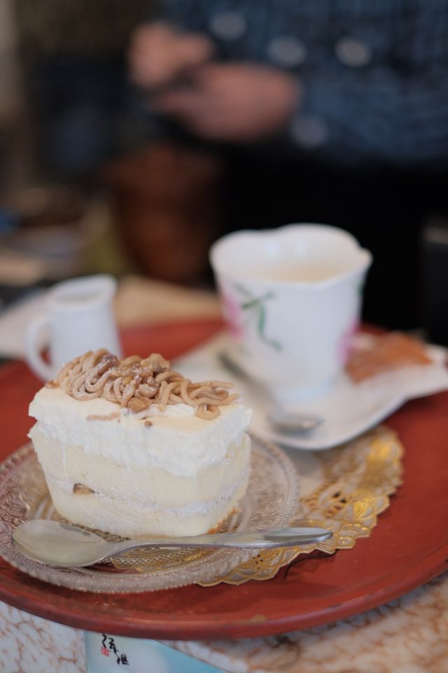 前几年乘车经过襄阳南路永康路口时,就看到西北侧这栋亮红色显眼的转角房子,可奇怪为啥记忆中是一家小笼汤包馆呢。不知何时,见到的肯定是家咖啡馆了,都是上午经过,阳关照射下金光灿灿的,就是店门常闭,吃不准开着还是关了。很不容易,夏天有机会路过去了一次,远看不像里面有人,但看店门口挂着的牌子OPEN,就果断进门。原来一楼空间稍小,光线稍暗,二楼则像是阳光室,下午虽然太阳直接晒不到,可从马路对面的墙上反射过来,光线充足又不会觉得暴热。陈设都是三四十年前的风格,咖啡还有栗子蛋糕的口味也是如此,我辈比较习惯,特别蛋糕是有点像红宝石的风味。坐在一楼的好处是可以和店主老爷叔聊聊天,爷叔非常健谈,另外洗手间也在一楼。价格适中,手冲送一块蛋糕,比较适合下午来,顺便永康路散步