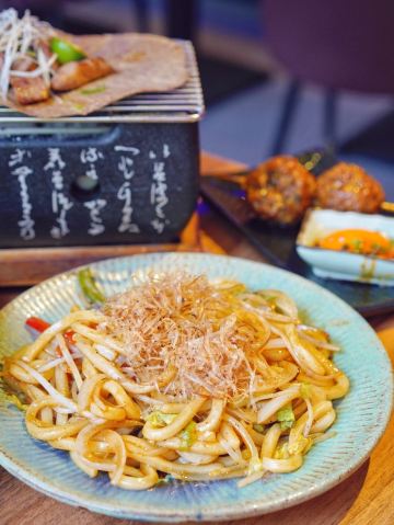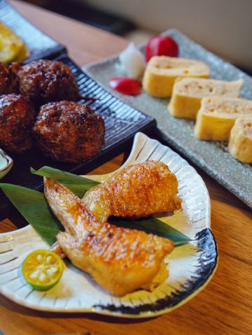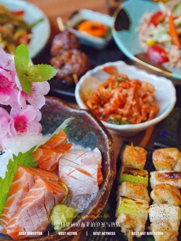 寿喜锅,香菇塞肉,炭烤鸡翅,三文鱼沙拉,芥末章鱼,鸡蛋卷,开片鱼,带骨香肠,三文鱼炒饭,烤鸡心,鸡胗,可尔必思,青花鱼,黄油炒菌菇,黄油土豆,京葱鸡腿肉,寿喜锅(小份),鸡肉丸,五花肉,金枪鱼色拉,炸鸡块,三文鱼,烤鸡肉串,烧鸟拼盘