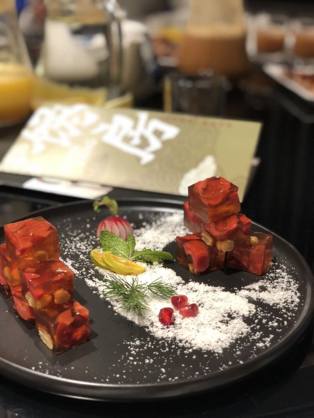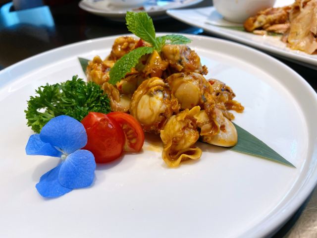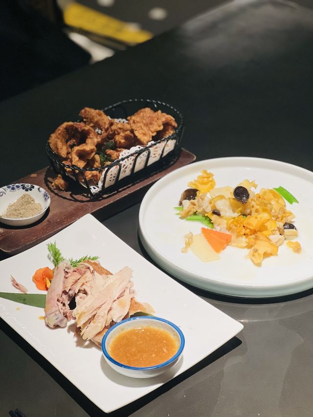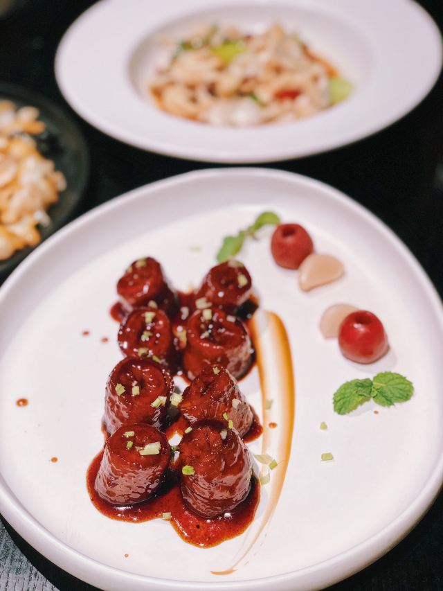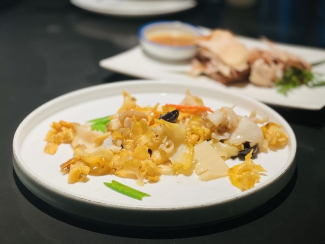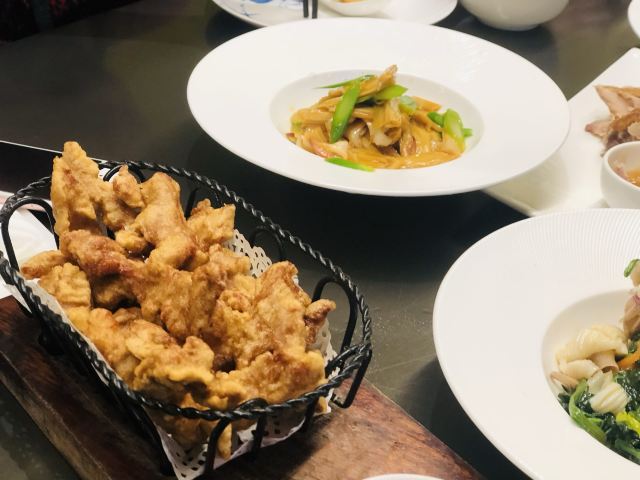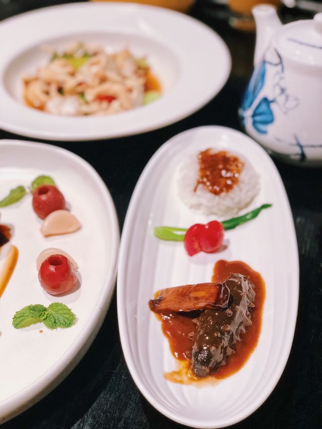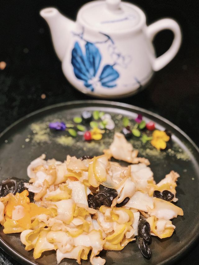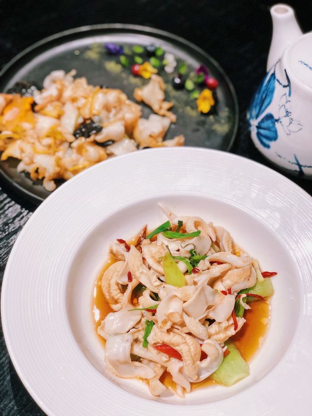 海鲜面疙瘩,绣球干贝,炭烤枪鱿鱼,糖醋里脊,软炸虾仁,鲜肉鱼籽炸酱面,爆炒腰花,参花虾仁乌鱼钱,拔丝红富士,生炒跑山鸡焖鲍鱼,花生芝麻汤圆,三鲜海肠捞饭,油淋鸟贝,椒麻天鹅蛋,福山烧鸡,风味茄子,海鲜疙瘩汤,鲅鱼水饺,五味海鲜水饺拼盘,九转大肠,明虾烧菜芯