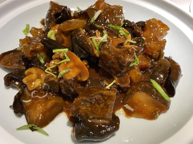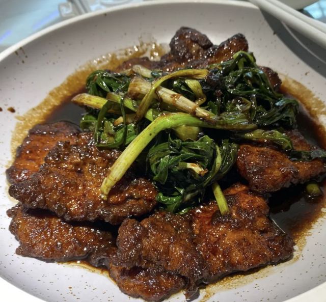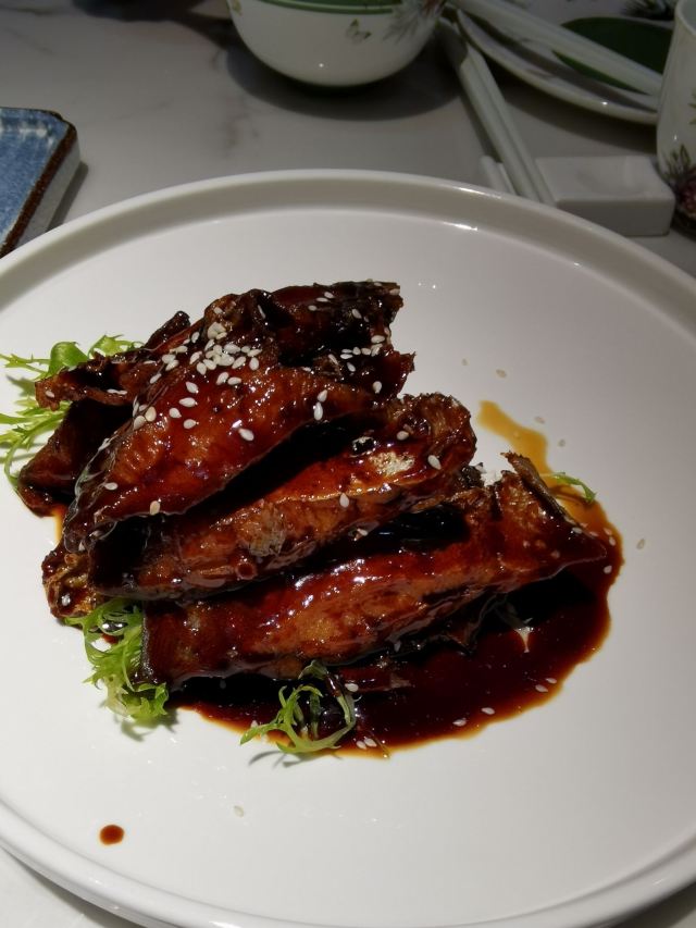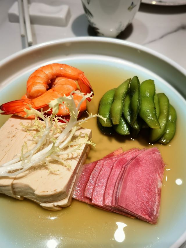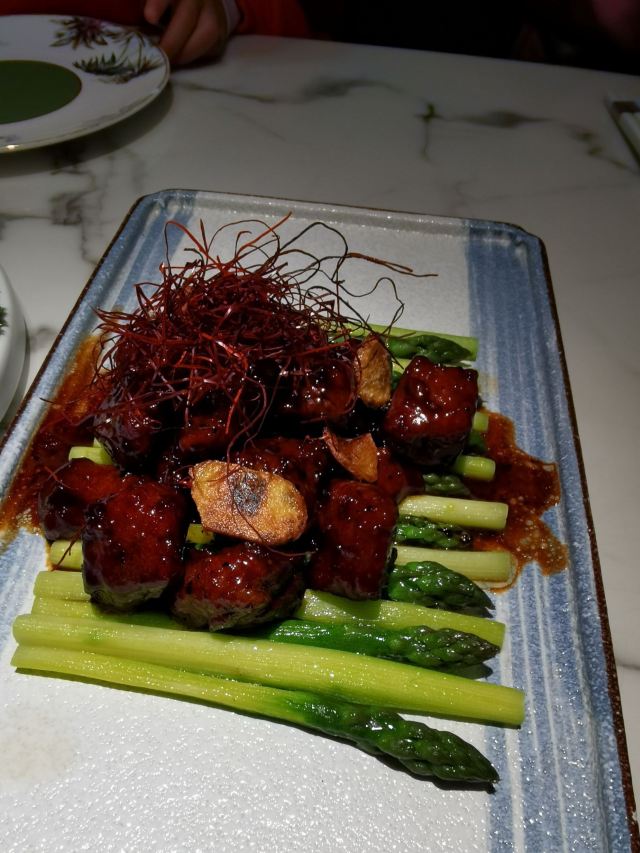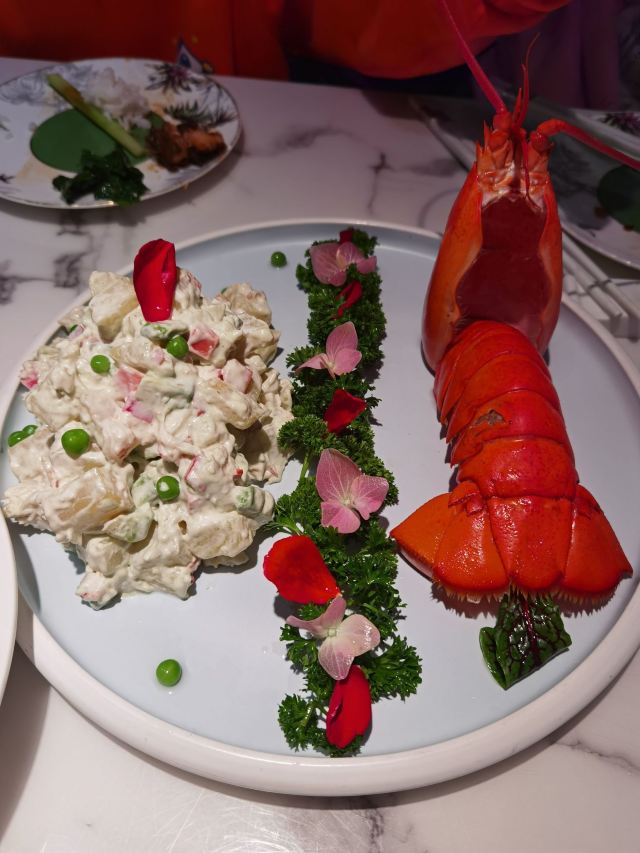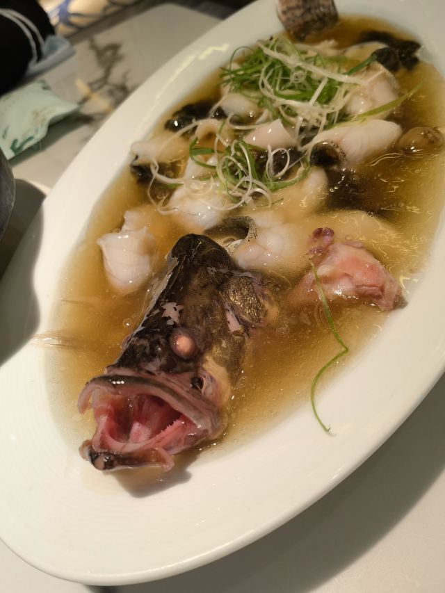 青青岛-全天第一顿正餐犒劳下自己!老佛爷商场一体的,直梯上8楼最方便。虽然快七点了还是需要等位,这家上海本帮菜还是挺受欢迎的。入店前会告知过年期间加收10%服务费,新年期间服务员短缺,工资三倍这点也可以理解。这里不是扫码点餐,传统的人工点餐,对老年人还是比较友好的!店内的桌间距离还是不错的,互不影响。啤酒没有啥选择,全是青啤系列,作为青岛来的人只能凑合了!虽然比较忙,但是上餐还是比较快的,每道菜都体现了上海本帮菜的特色。北方的熏鲅鱼,这里是用的鲳鱼,鱼薄更入味,当然是甜口了!冰镇雪梨球➕山楂糕就是一道解腻凉菜,有点简单。黑胡椒牛肉粒还是比较嫩的,绿芦笋给削皮的,所以不影响口感。最后这个波龙沙拉无论是口味还是还是速度都很满意,因为制作需要时间,店家下单时候还特意叮嘱了一下加急。