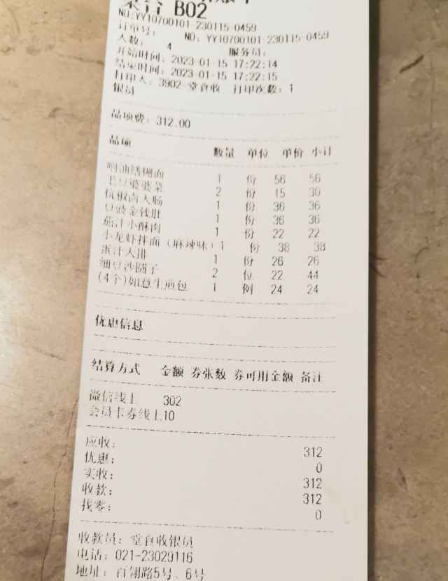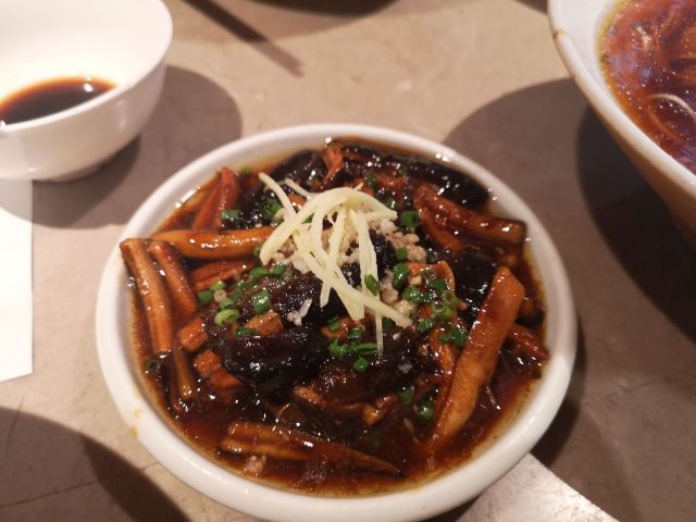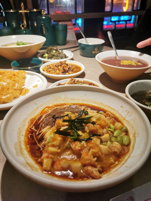 实叶熏【环境】 过年期间想在热闹的城隍庙找家餐馆坐下来吃顿饭也是不容易的。好歹这家等位没有很久。进去后人声鼎沸,热闹非凡。餐厅上下两层,底楼我看了下大多数是要拼桌的。我们有幸去了二楼,正好一桌不用拼。 【服务】 服务员忙到飞起,体谅下总体还是可以的。 【口味】 小龙虾拌面,一直很喜欢它家的面,非常劲道好吃。 鲜肉生煎,这个意外的好吃,如果底盘能再煎脆一点,这道菜直接满分了,推荐 豆沙圆子,不甜不腻是我喜欢的味道。家人嫌弃不够甜,因人而异吧,我自己很喜欢。 豆豉牛肚,这个差差评,点的时候感觉价格挺实惠的。结果端上来烂糊一盘,翻一翻根本找不到牛肚,不推荐。